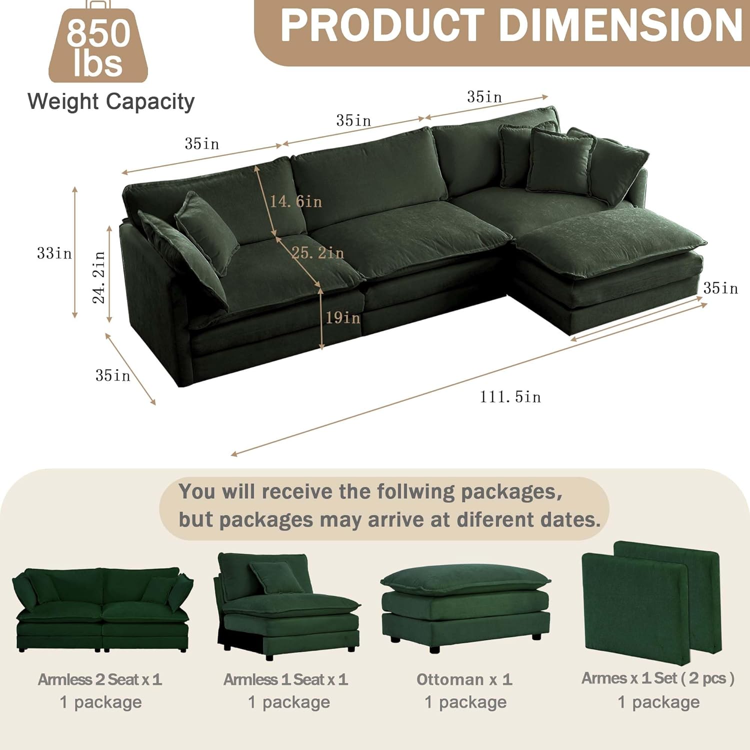 - Effortless Assembly, Maximum Convenience: Designed for hassle-free setup! All tools and clear instructions are included. The modular pieces fit seamlessly β assemble your dream sofa. Compact packaging also makes it easy to move through doorways or upstairs.