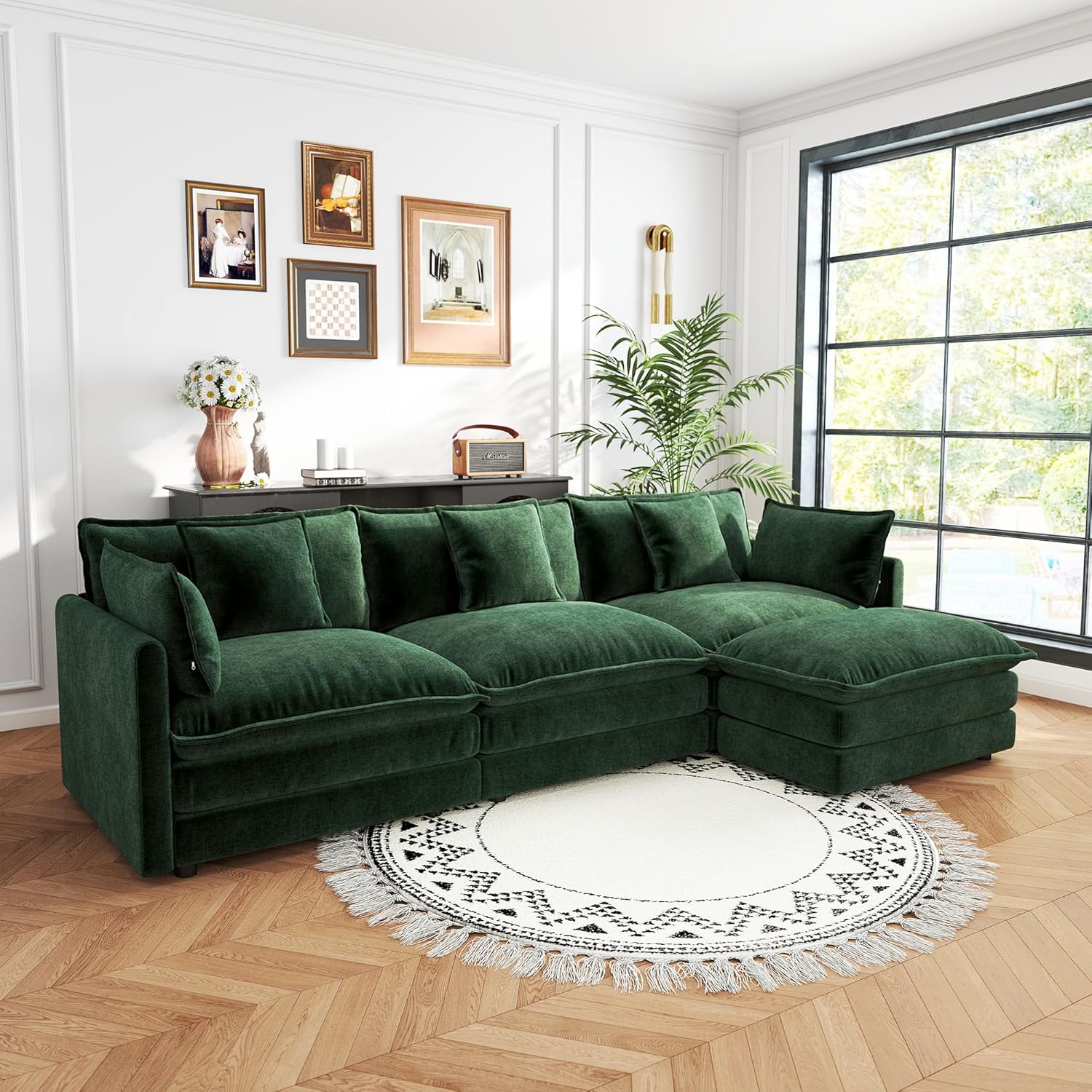 Sectional Sofa 3 Seater with Movable 1 Ottoman,Oversized Modular Couch Deep Seat (Green, 111.5 inch-L)