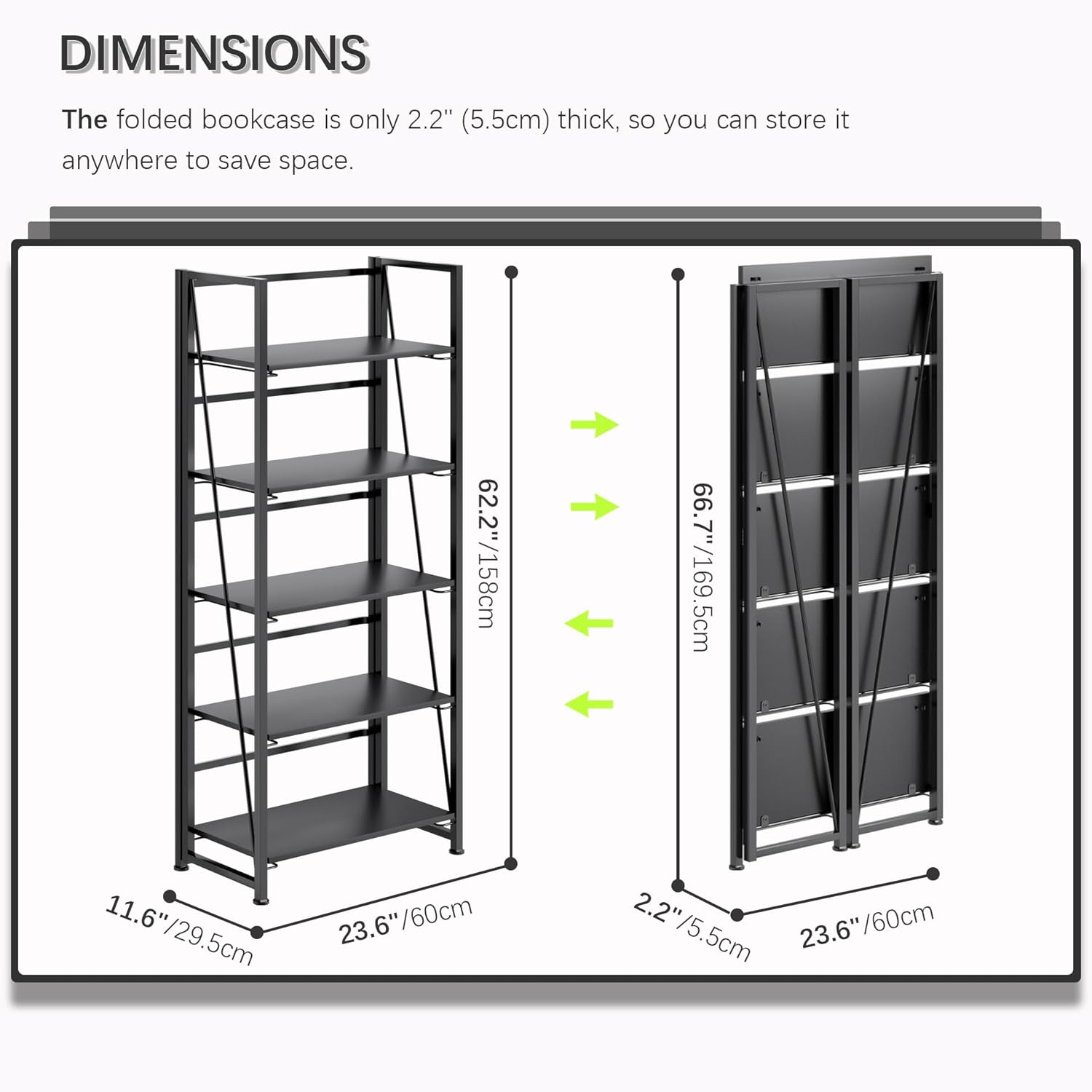 - ăThe Unique Foldable Design ShelfăAllows you to hide the bookshelf behind the corner of the wall, behind the cabinet, or behind the sofa, etc, which can save your space. When you move, you don't need to disassemble it, and you can easily take it with you