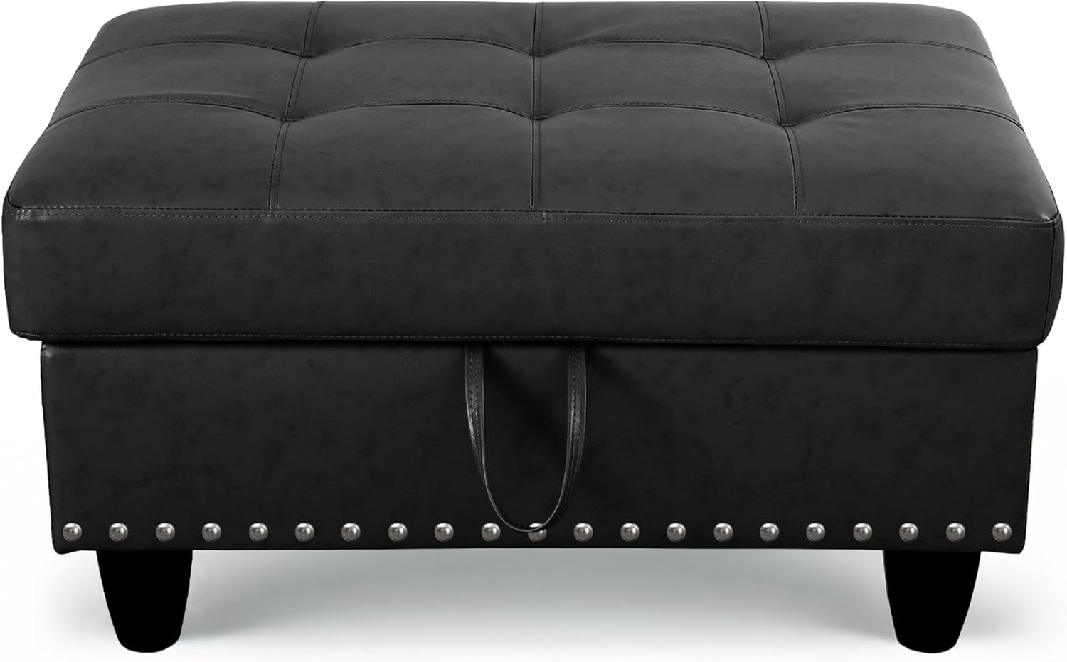 Ottoman Rectangular Storage Ottoman Bench, Faux Leather Footrest, Coffee Table, Stool Footstool with Hinged Lid for Living Room, Bedroom, Entryway, Black, 28.5"x19"x17.5"
