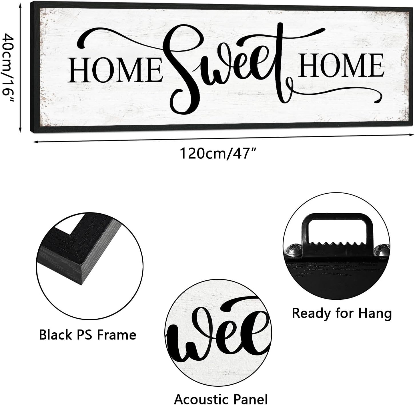 HLJ ART Home Sweet Home Wall Decor Above Bed 16"x48" Framed Large Bedroom Signs Decor for Master Family Room Living Room Dining Room,Modern Farmhouse Ructic Home Sign Behind Couch Wall Decor
