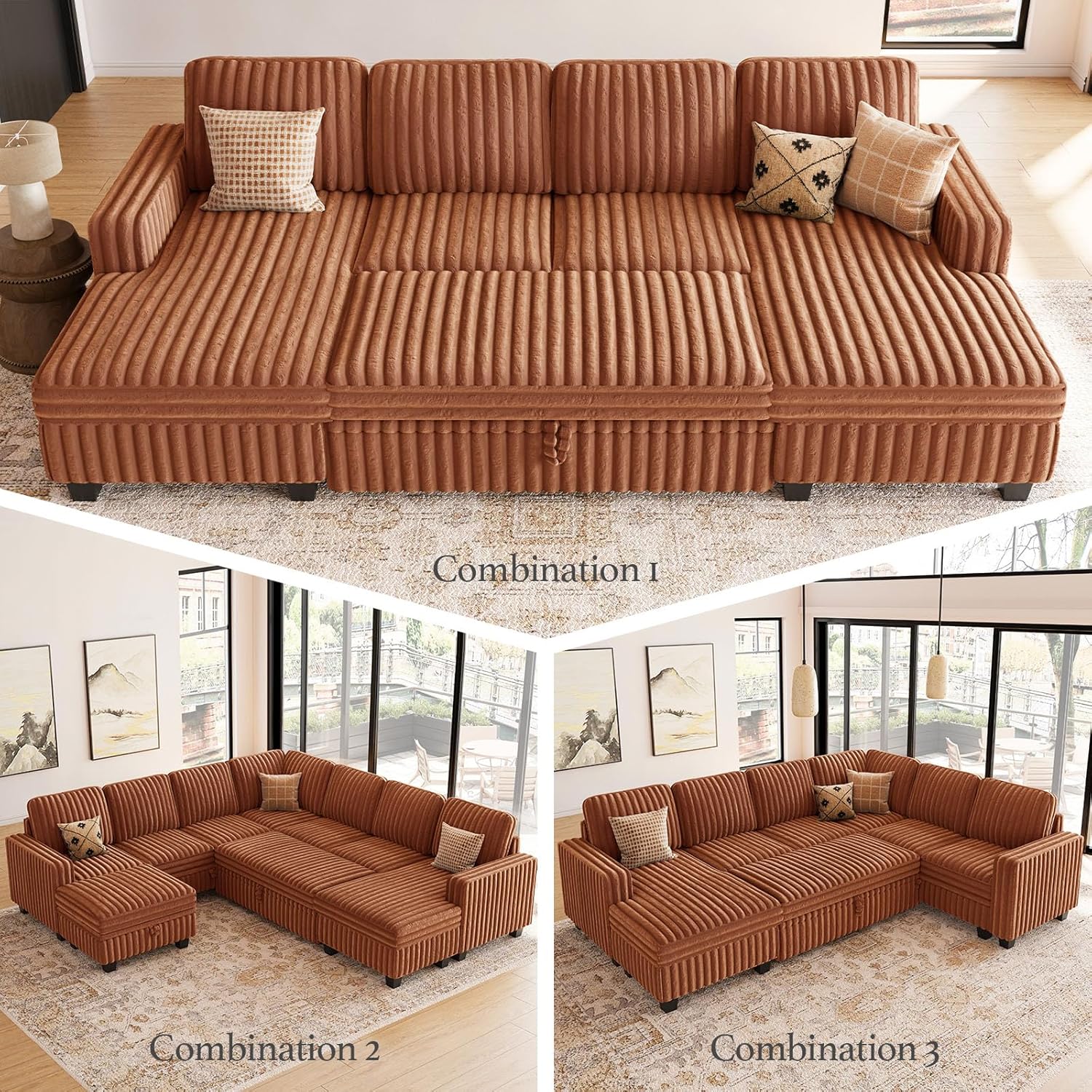 - Easy Assembly: Assembly of this modular sectional pull out sofa is effortless. The corduroy sectional sofa is conveniently packaged in 5 boxes, which may occasionally be delivered on separate days