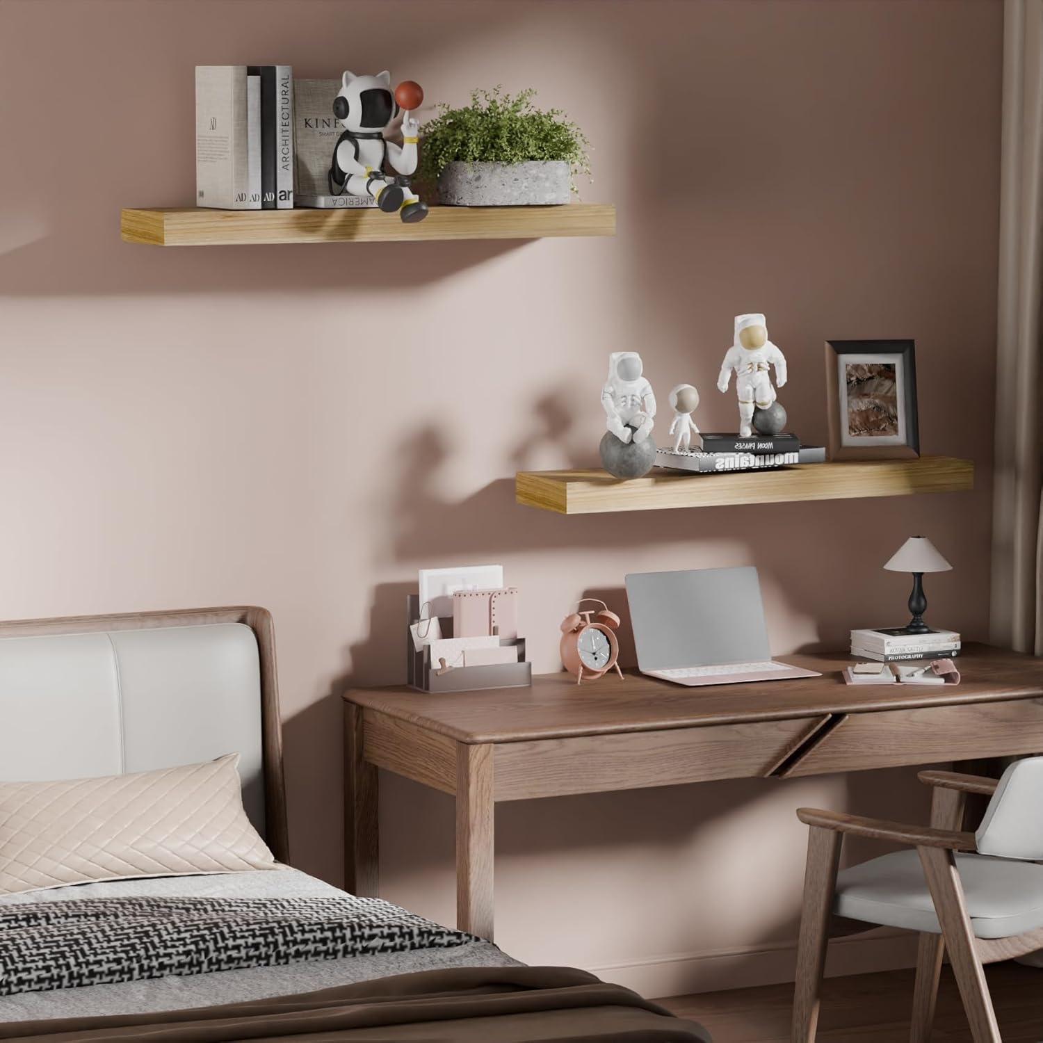 - γπ½ππππππππ πΌππγWith an even coating on all surfaces,Our floating shelves are versatile use, making them ideal for bathrooms,kitchens,bedroom.The generous 6.7" width accommodates a variety of items,from bathroom essentials to books and decorative pieces.