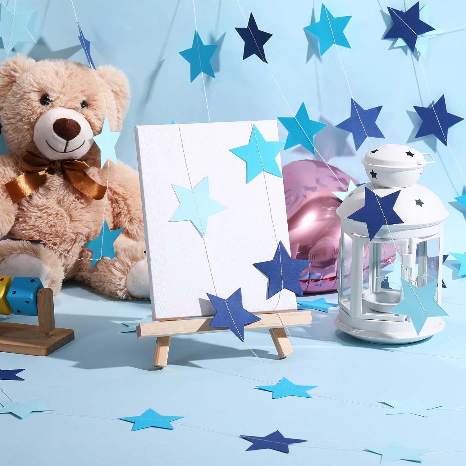 Patelai Glitter Star Garland Banner Decor 130 Feet Star Hanging Bunting Banner Twinkle Backdrop for Homecoming Classroom Wedding Birthday Halloween Christmas Party Supplies(Ocean Blue)