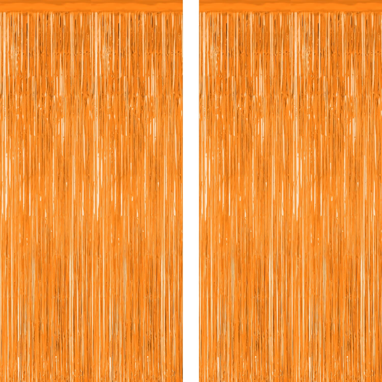 2 Pack Backdrop Curtains, 3.28 FT x 7.05 FT Orange Color Tinsel Backdrop, Metallic Party Streamer Fringe Curtains, Foil Curtains Halloween Decor Birthday Party Supplies