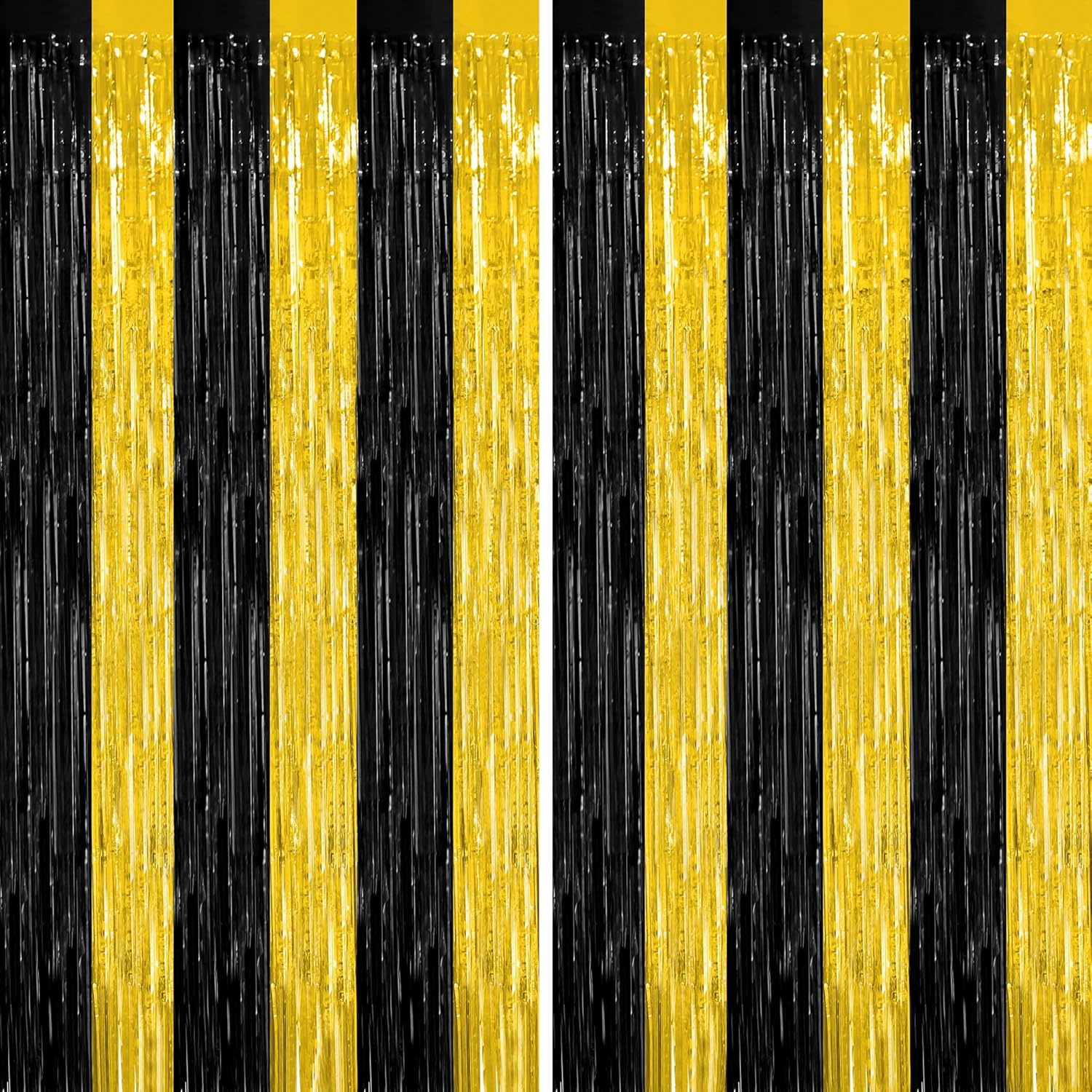 - Package Includes: You will receive 2 pcs black and gold backdrop, each fringe curtain is 3.28 ft x 7.05 ft, it is long enough to be cut to your desired size, suitable for doors, windows, tables and many other places.