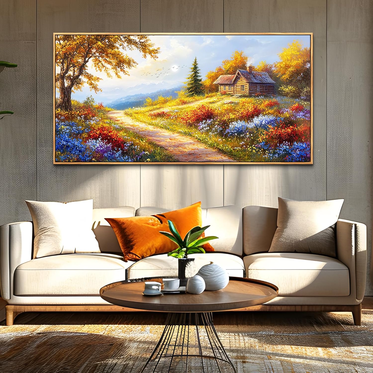 KELIYUAN Large Wall Art For Living Room Framed Canvas Wall Decor For Farmhouse Office Wall Pictures For Bedroom Landscape Painting Prints Dining Room Kitchen Modern Home Decor Wood Framed 24"X48"
