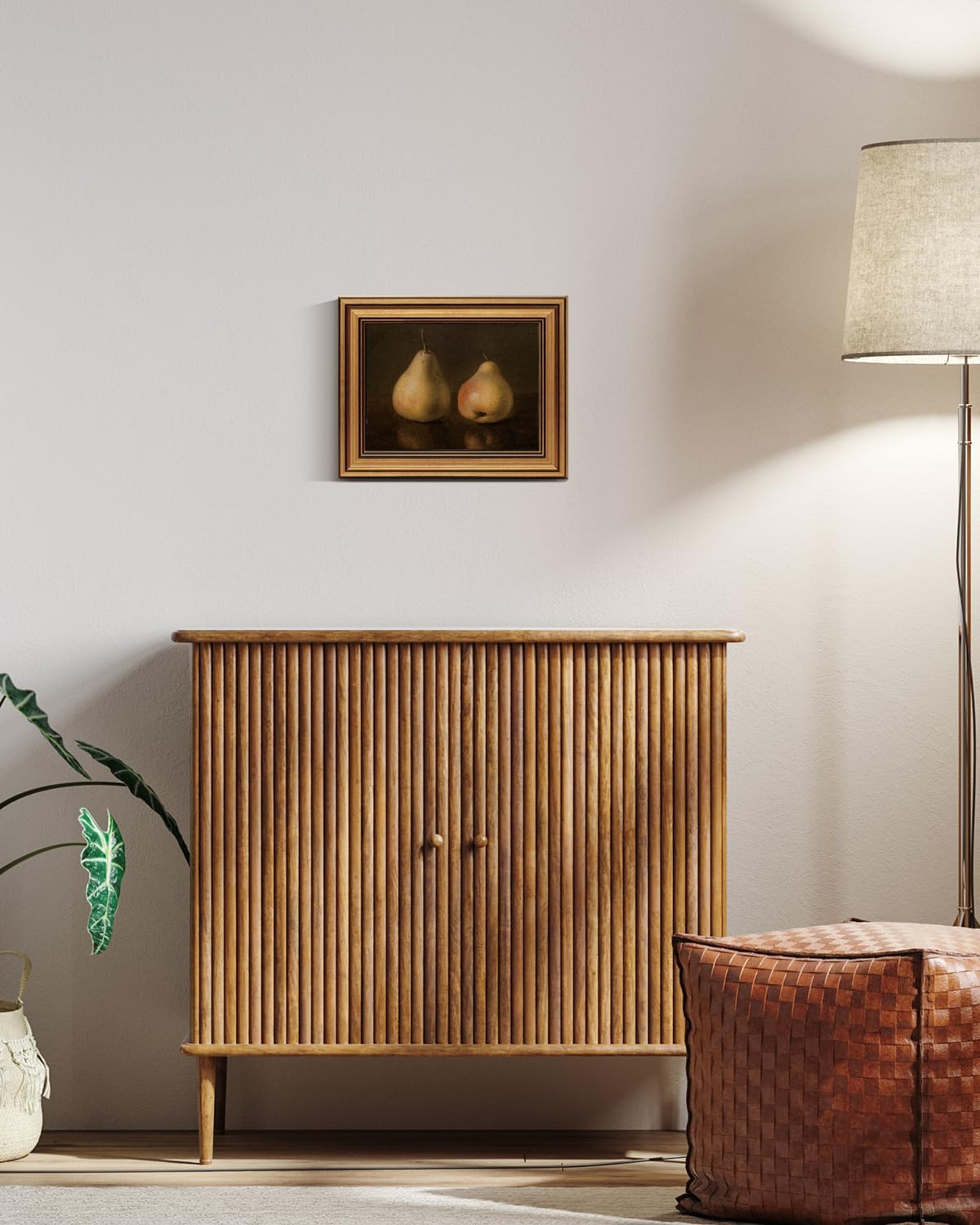 - CLASSICAL ROOM DECOR: Vintage Still Life Pear painting, this wall art picture print utilizes the classic chiaroscuro technique. The two pears, gently leaning toward each other, symbolize a sense of companionship—whether familial, friendly, or romantic. Or abundance, life, and family. The detailed rendering of the fruit’s delicate blemishes and organic imperfections lends an authentic, timeworn charm to the artwork. Inviting viewers to reflect on the beauty of simplicity and everyday life