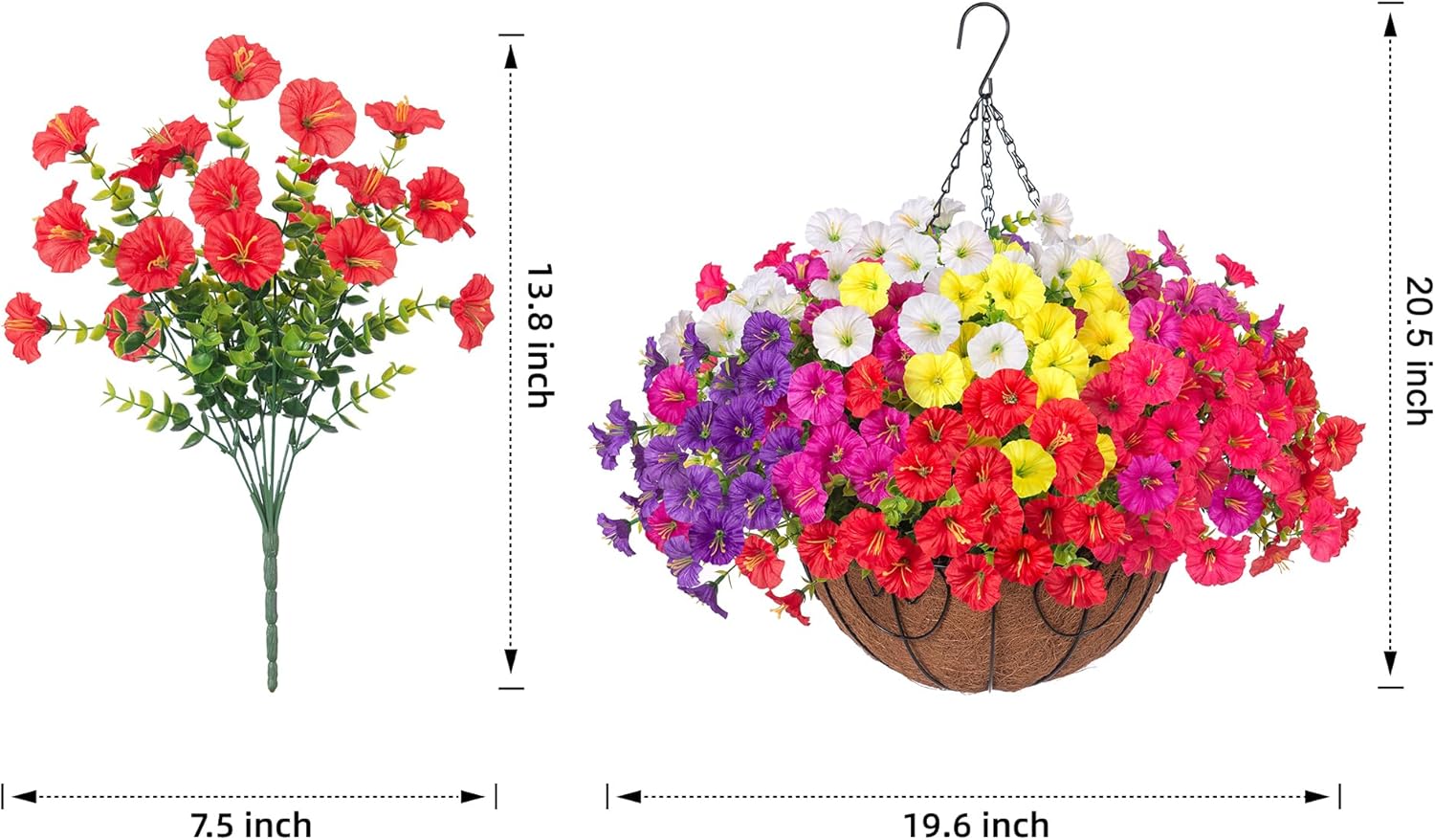 - π’ Artificial Hanging Morning Glory Flowers Basket: Package include 12 bundles Realistic silk morning glory match with green eucalyptus leaves, 1 Hanging Basket with chain, 1 foam, 1 green hat. Enjoy vibrant blooms year-round, regardless of the season or weather conditions.
