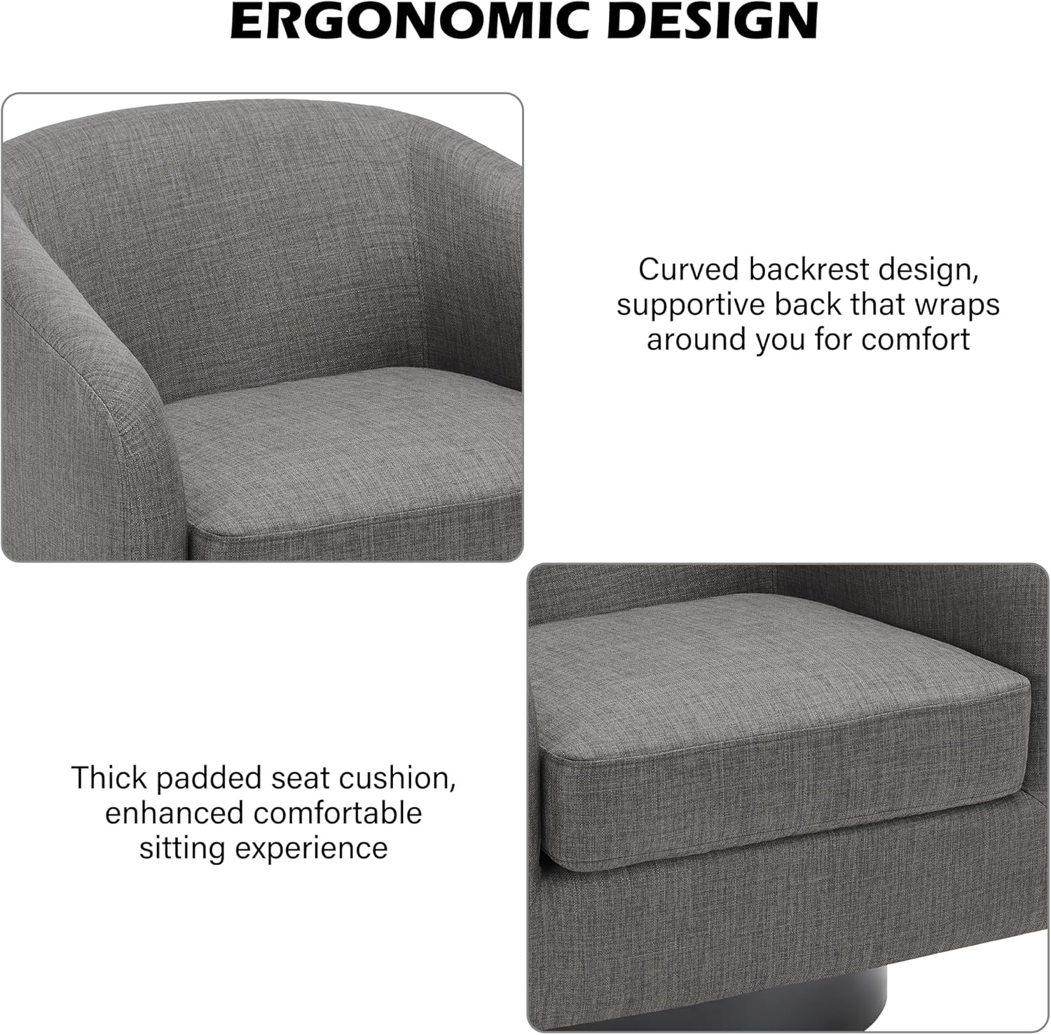 Swivel Barrel Accent Chair, Modern Round Linen Arm Chair for Living Room, Bedroom, Comfy Club Reading Chairs for Adults(Linen Fabric, Grey, Set of 4