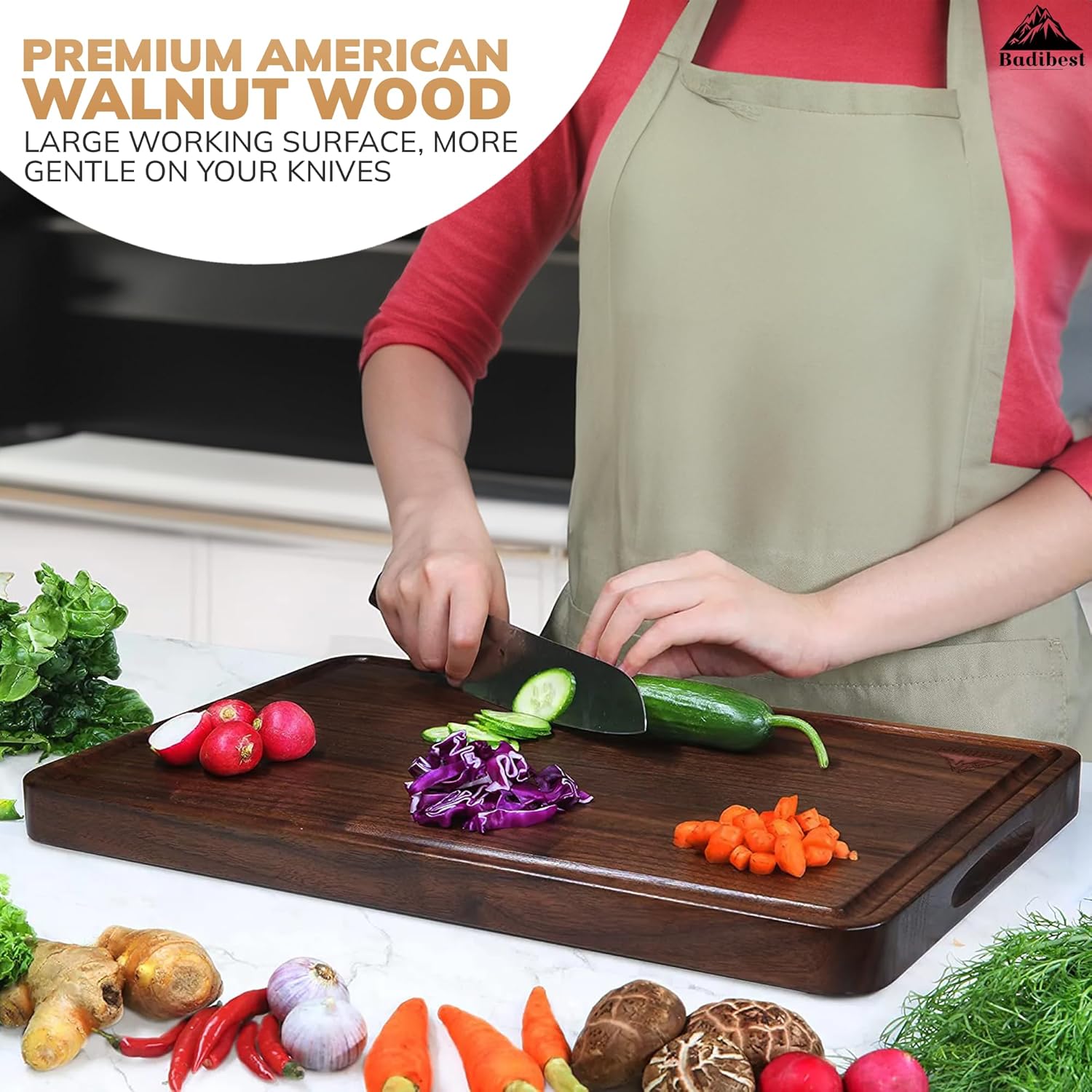 - ใ๐๐๐ง๐ญ๐ฅ๐ ๐จ๐ง ๐๐ง๐ข๐ฏ๐๐ฌ โ ๐๐ฆ๐จ๐จ๐ญ๐ก & ๐๐ฅ๐๐๐-๐๐๐๐ใ:Unlike plastic, bamboo cutting board, or acacia wood cutting board alternatives, this walnut wood cutting boards protects your knives from dulling. The smooth surface of this non toxic cutting board supports clean, effortless cuts, whether you're chopping herbs or carving meat.