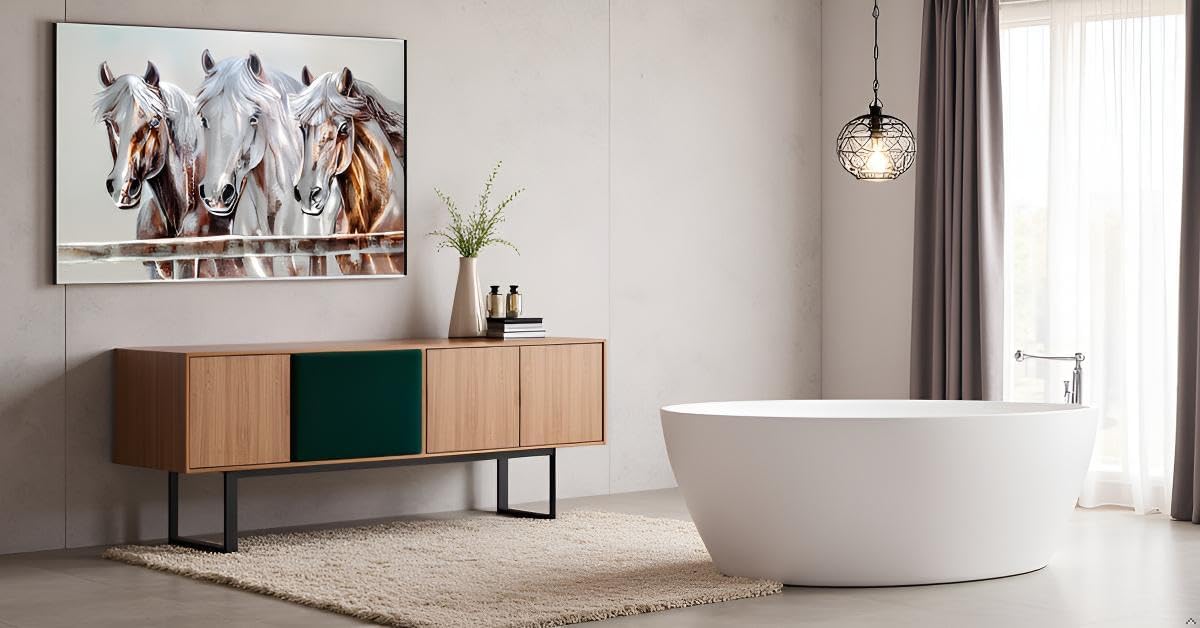 - Enhance your living space with the Yihui Arts Rustic Metal Wall Art, featuring a hand crafted 3D aluminum artwork of three horse heads in brown, silver, and beige tones.
