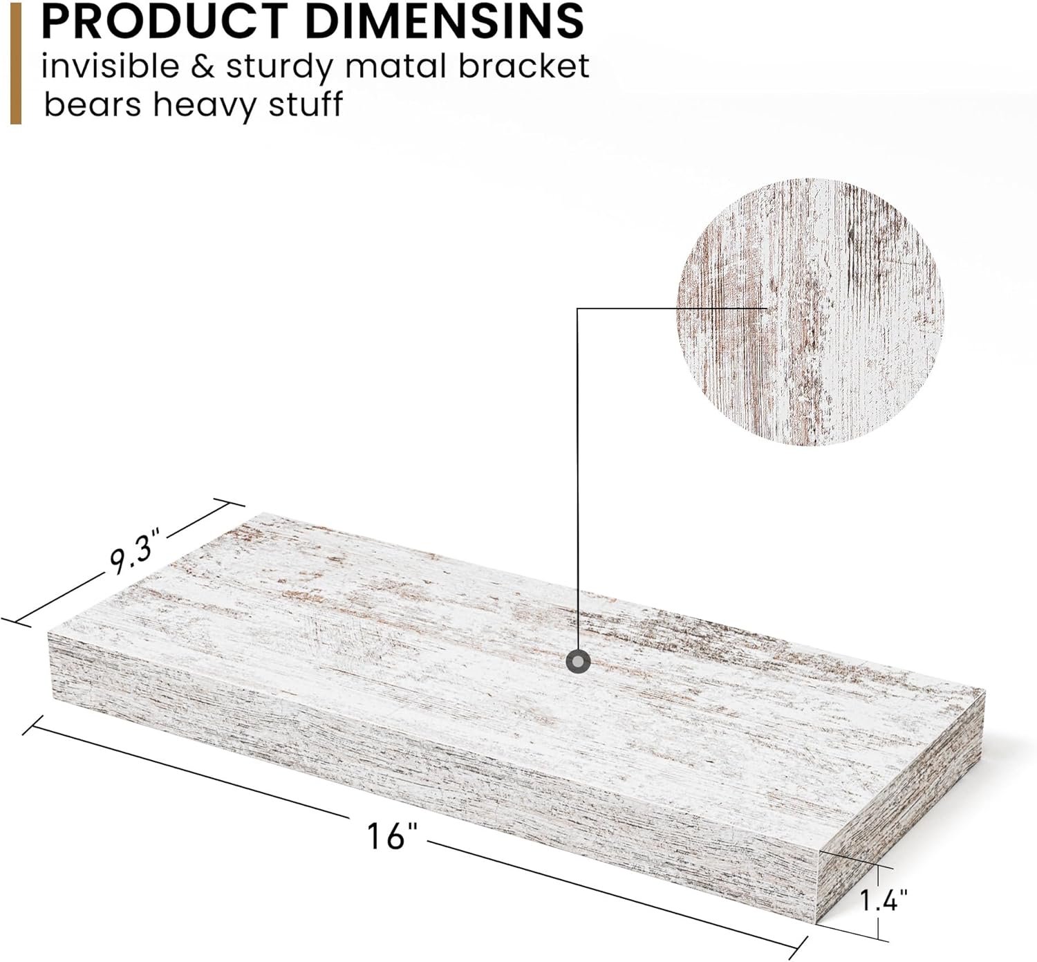- 9 Inch Deep Design - This wall shelf measures 16"W x 9"D x 1.6"H. Extra deeper and thicker design in order to bring maximizes storage space and weight capacity, even hold up to 40 lb. This floating shelf taking up zero square feet, reduces clutter and highlights dรฉcor in compact spaces.