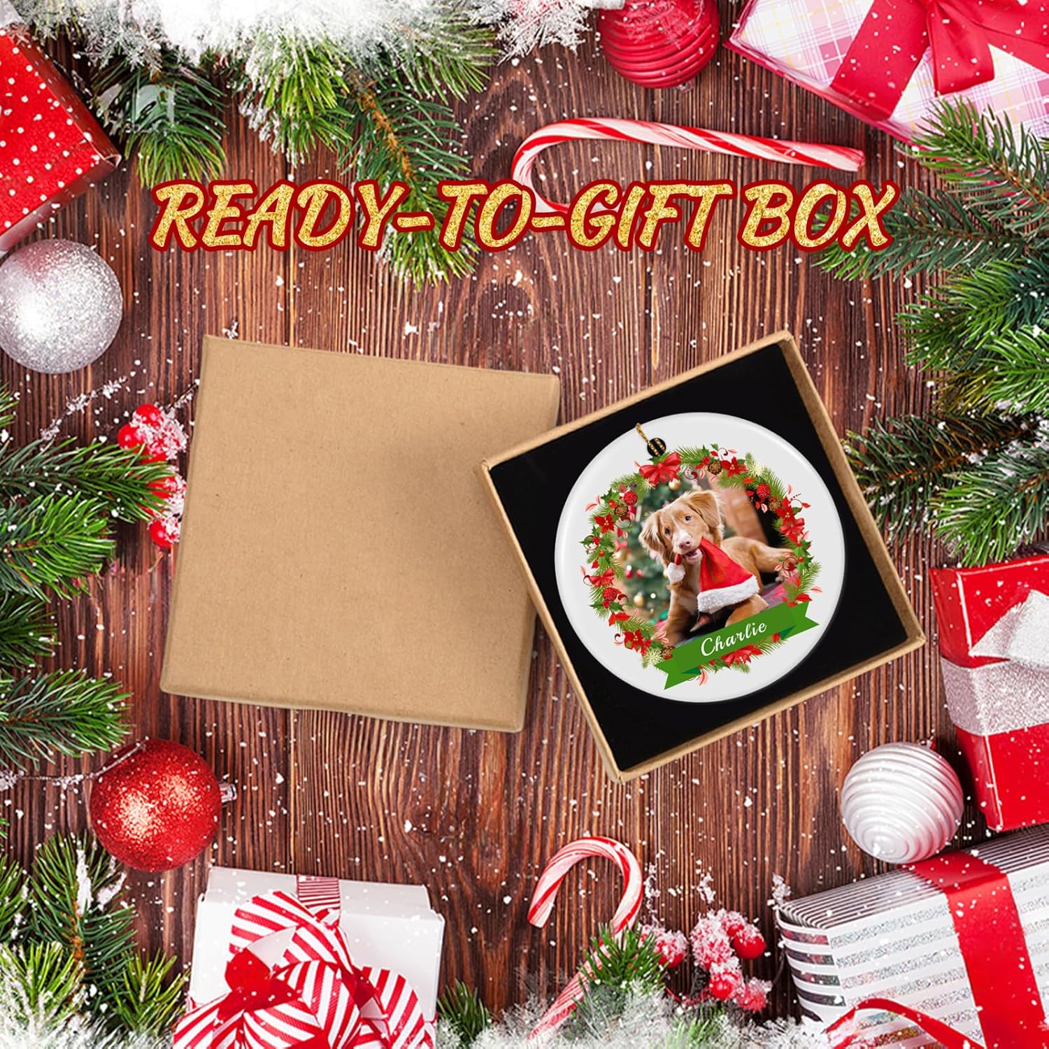 - 【Memorial Gifts for Dog Lovers】 Makes a great keepsake gift for dog lovers, dog owner, pet lover, family member, friends, and more. This personalized Xmas ornament will be an ideal way to memorize the special day and create a warm and sweet Christmas atmosphere.