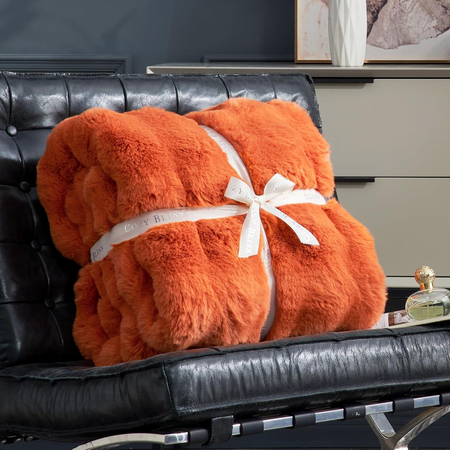 Cozy Bliss Faux Fur Throw Blanket for Couch, Fuzzy Soft Plush Thick Bubble Blanket for Sofa Bedroom Living Room, 60 * 80 Inches Burnt Orange