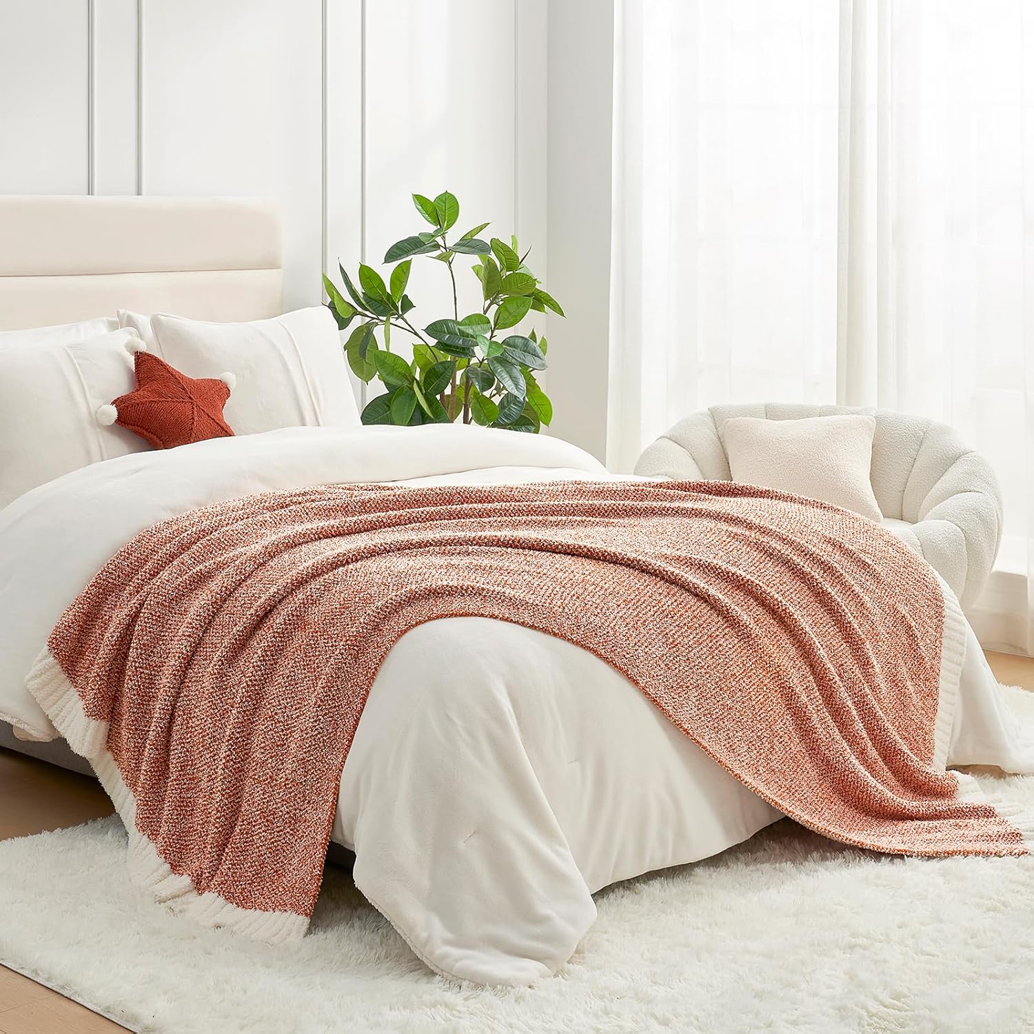 Snuggle Sac Orange Fall Throw Blanket for Couch, Oversized Throw XL Super Soft Warm Blankets Cozy Knit Fuzzy Throws for Sofa, Bed, Living Room, Heather Orange, 50x70 inches