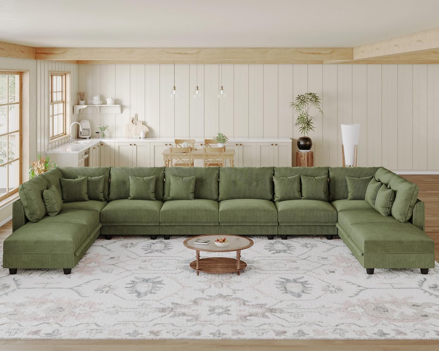 LLappuil Modular Sectional Sofa with Storage Seats, Corduroy Convertible Modular U Shaped Sectional Couch for Living Room, 10 Seat Oversized Sofa with 10 Back Cushion 10 Throw Pillow, Green