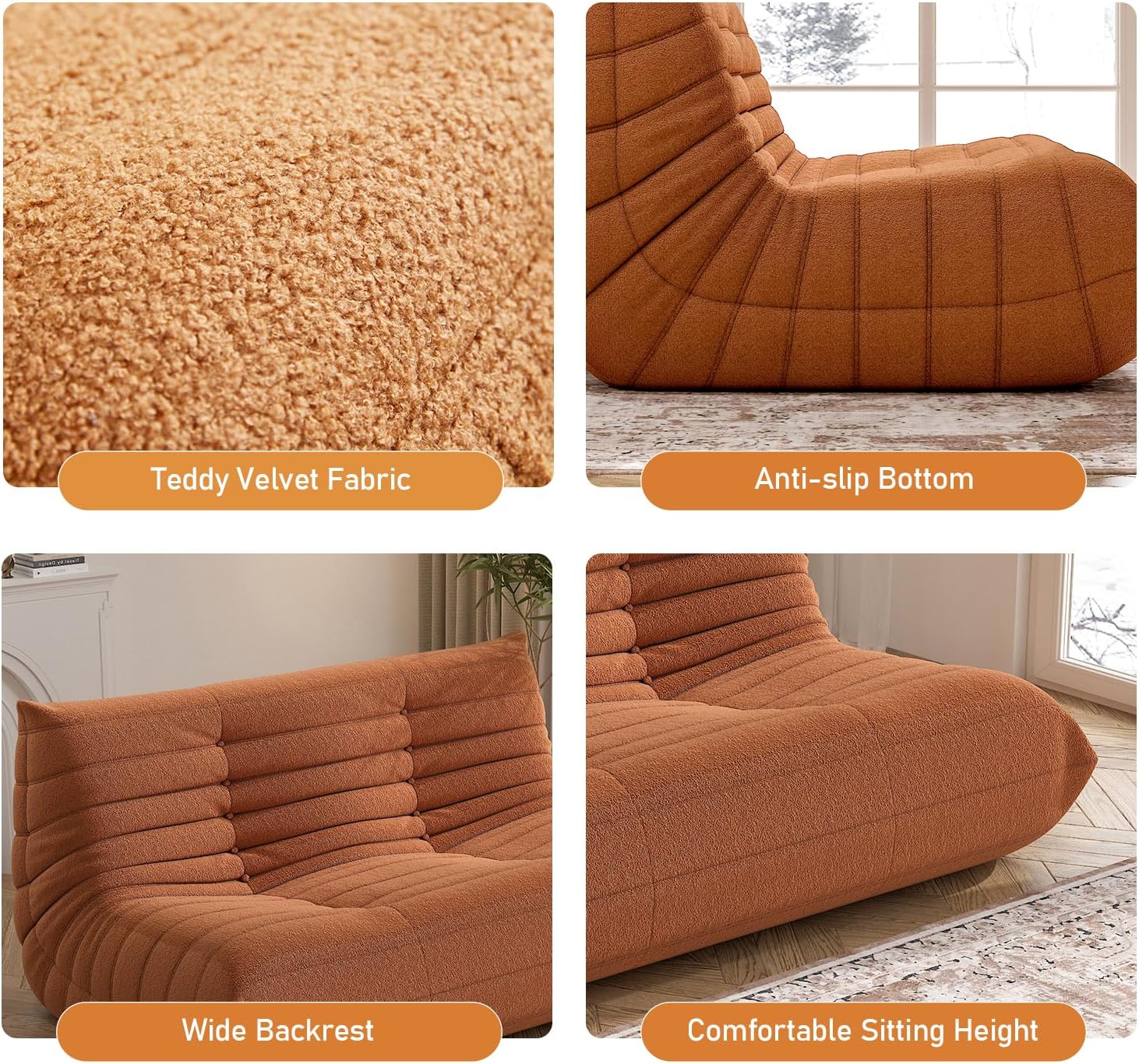 - ăPremium Fabrică- Our bean bag chair loveseat is made from high-quality teddy velvet fabric, providing a soft, luxurious feel while ensuring excellent breathability. This fireside chair fabric is not only skin-friendly, durable but also easy to clean, keeping your bean bag looking fresh.