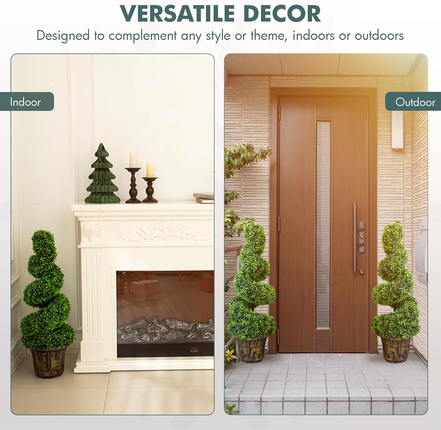 - BUILT TO LAST - Crafted from high-quality materials, this topiary is designed to withstand indoor and outdoor conditions without fading or deteriorating.