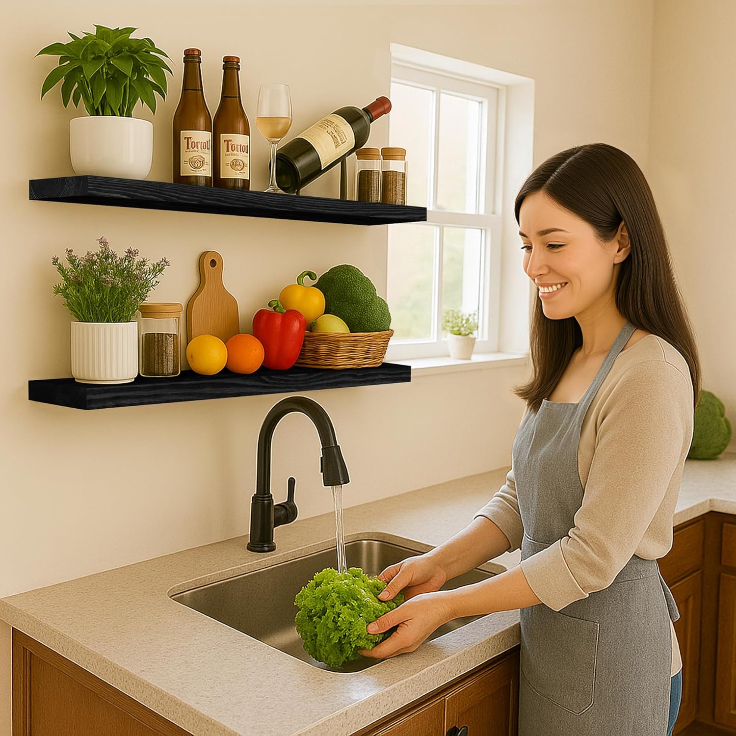 - Style : Rustic farmhouse floating shelves