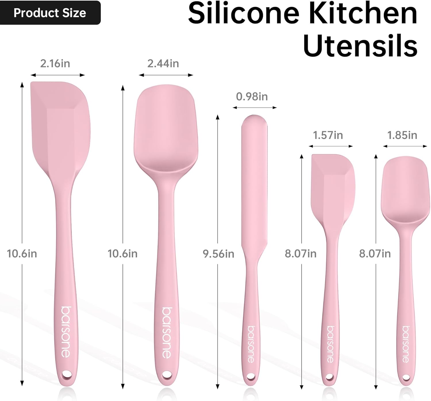 Barsone 5-Piece Silicone Spatula Set( Heat Resistant 446°F Food Grade BPA Free, Nonstick Cookware Safe Dishwasher Safe Kitchen Tools for Baking, Cooking, Stirring, Pink)