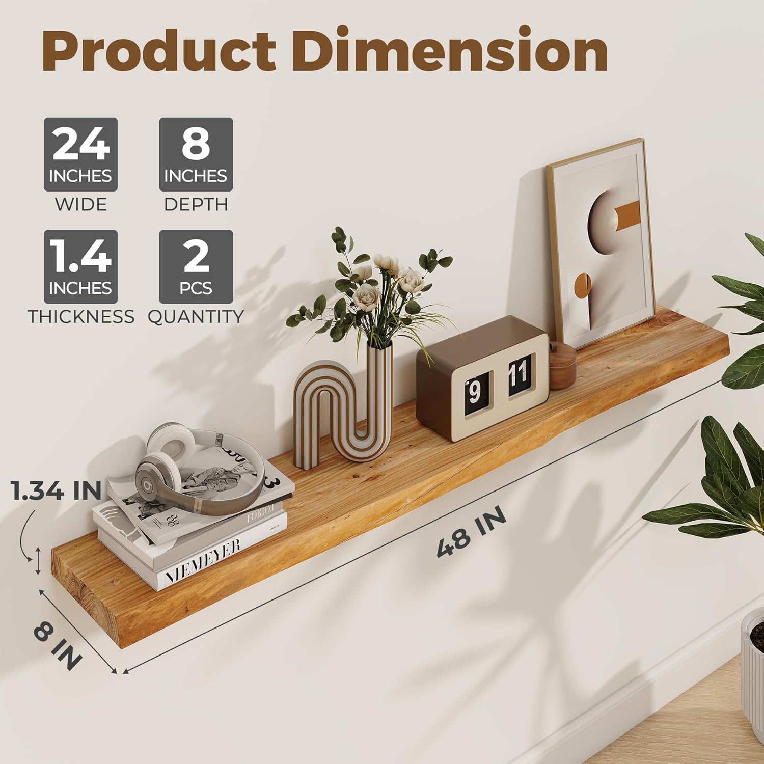 - 8" Deep - More Space, More Tidiness: Measuring 8 inches deep, 1.4 inches thick and 48 inches wide, these shelves provide ample space for books, photos, and small plants, making them the perfect choice for living rooms, kitchens, and offices alike