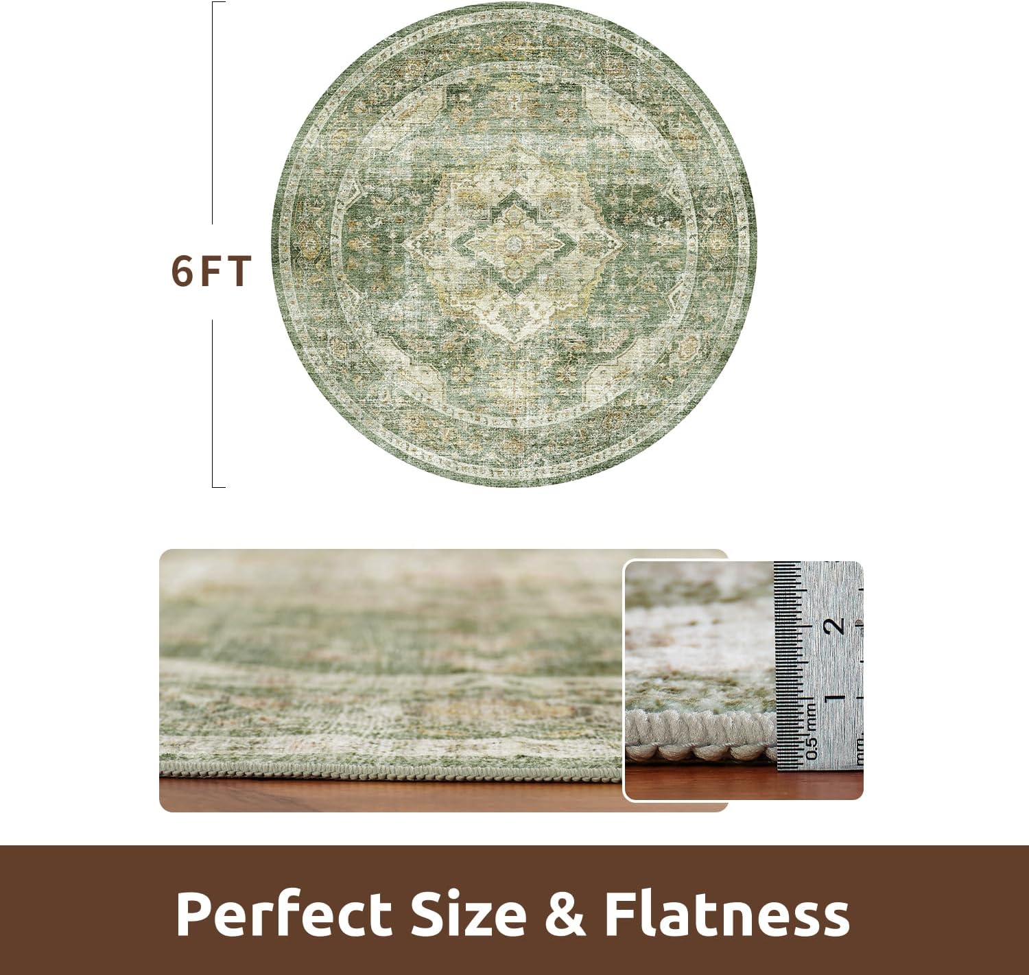 AMOAMI-6FT Round Rug-Rugs for Living Room-Vintage Soft Olive Green Rugs for Bedroom-Non Slip Circle Rug-Machine Washable Rug for Dining Room Living Room Bedroom Office Under Table