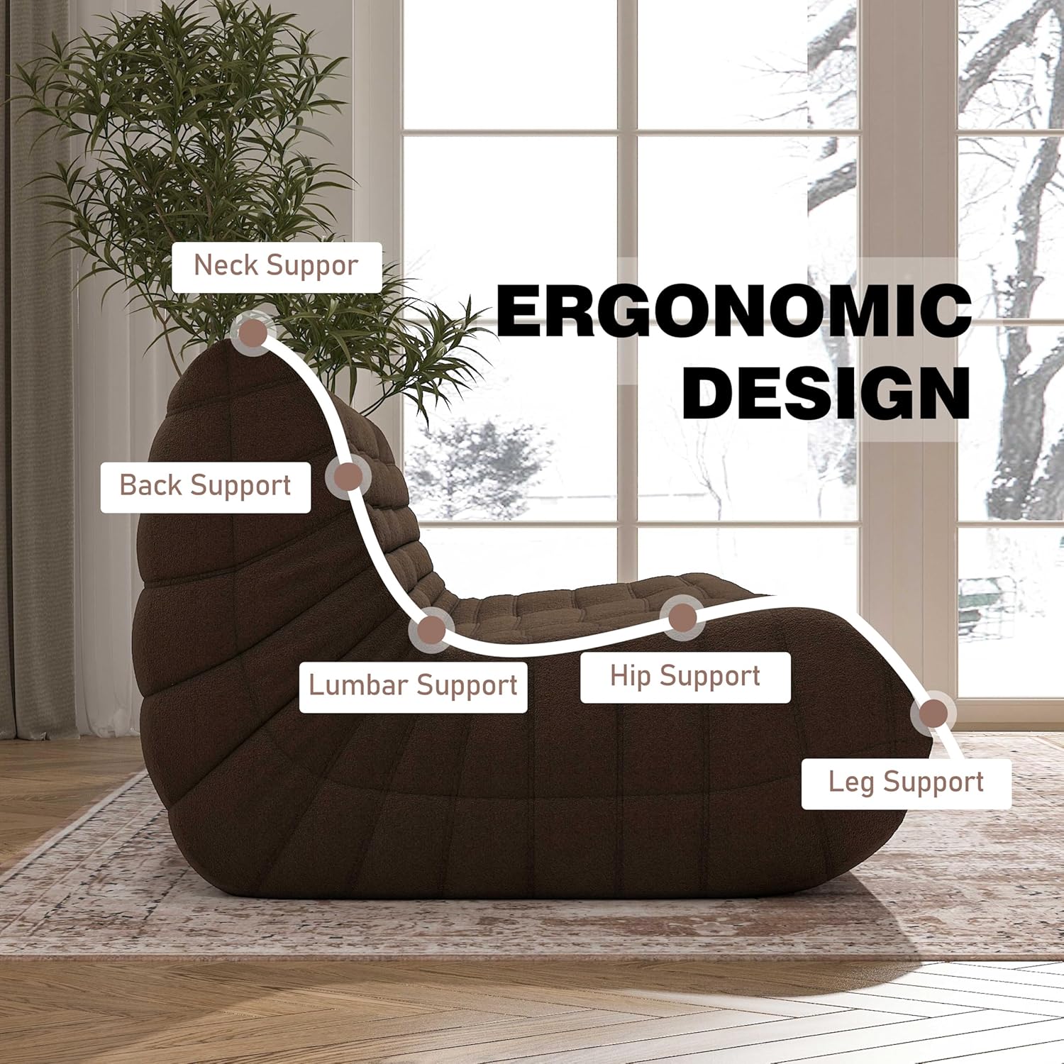 - ăErgonomic Designă-Designed with your comfort in mind, the bean bag chair features a thoughtful ergonomic design that provides exceptional support for your neck, back, lumbar, hip and leg region. The loveseat high-elastic memory foam filling conforms to your body, offering targeted support and ensuring a cozy sitting experience.