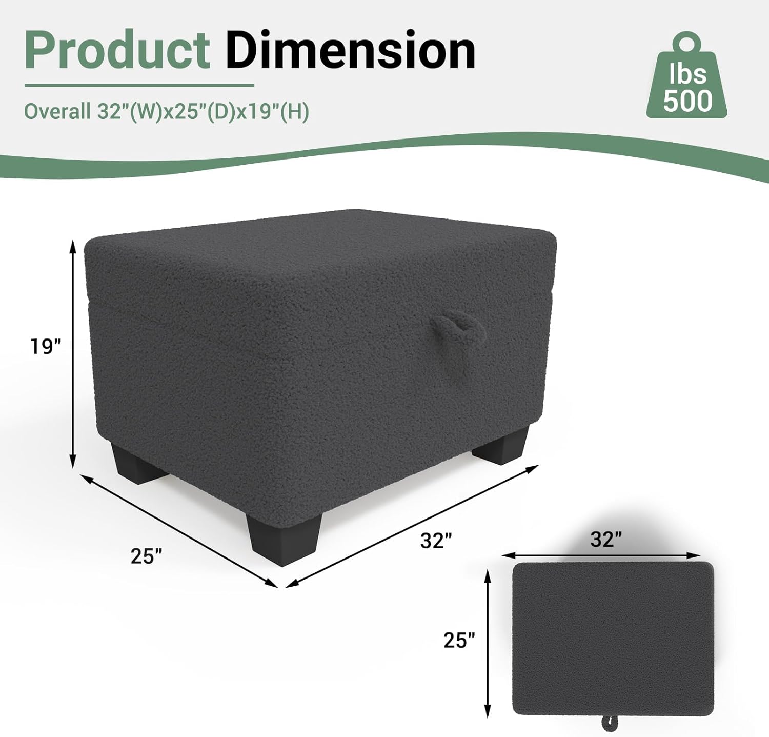 Ottoman Sofa, Modern Comfortable Ottoman with Storage Space for Living Room Apartment Lounge Sofa, Black Bouclé