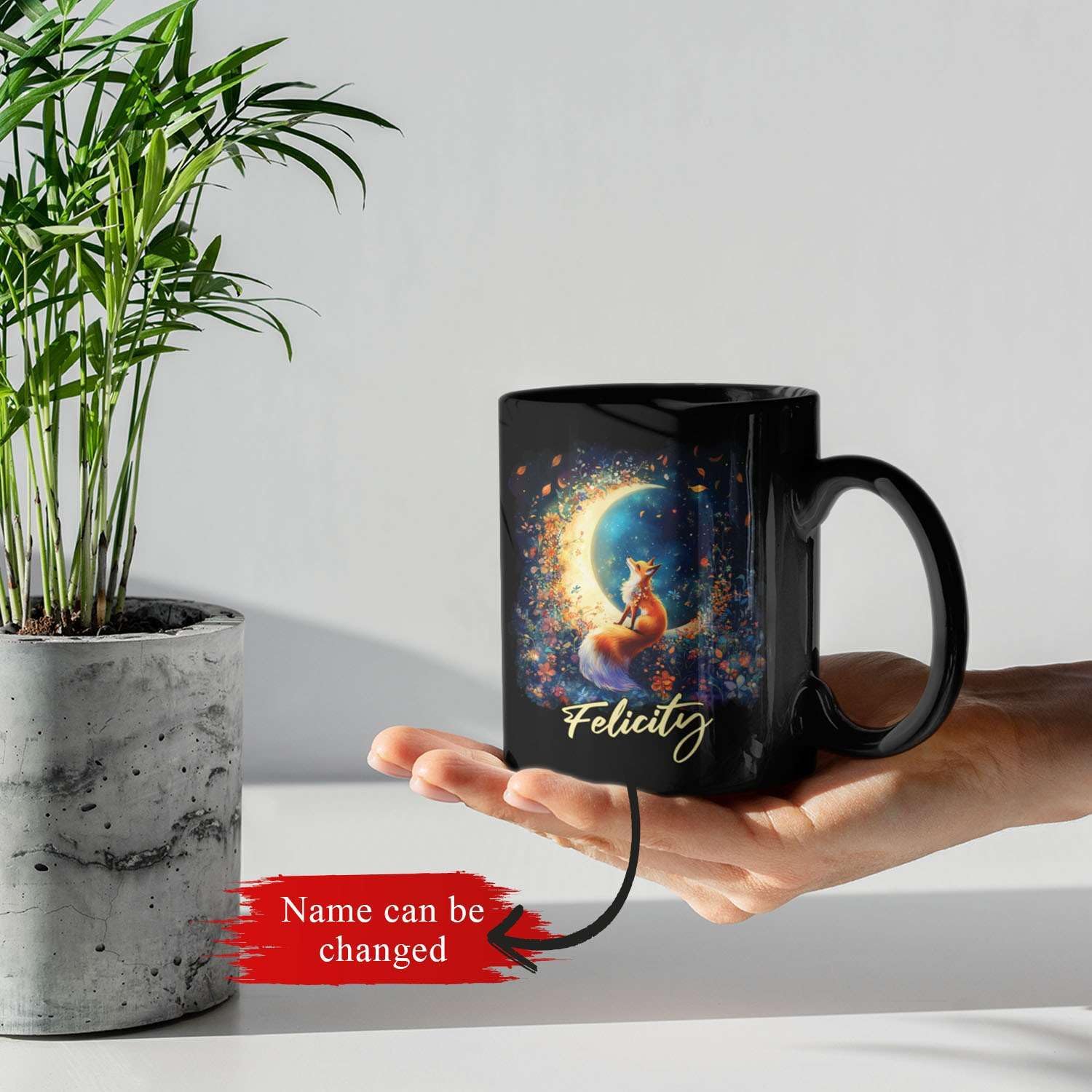 - 💝【UNIQUELY PERSONALIZED】Add a touch of magic to your mornings with this Personalized Name Ceramic Mug featuring an adorable fox under a crescent moon in an enchanted forest. The charming floral design makes this black mug gift for kids and animal lovers. Click "Customize Now" to add a name and create a unique, customized gift. Available in 11oz and 15oz sizes, it's an ideal present for any occasion!