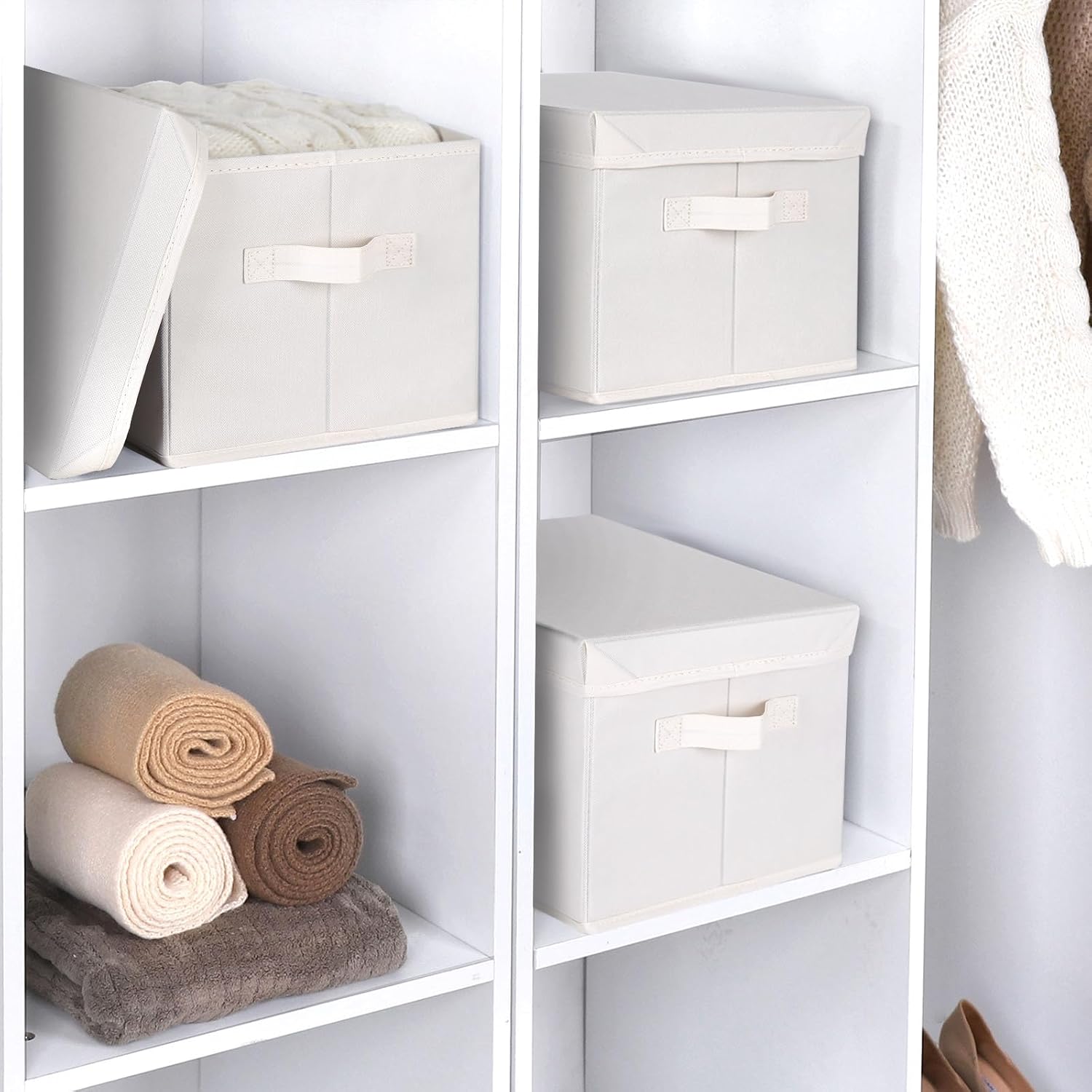 - Multi-Purpose: These storage bins with covers are suitable for bedrooms, living rooms, offices, laundry rooms, kitchens, closets, or under beds. Ideal as closet organizers, storage baskets for shelves, clothing storage bins and more.