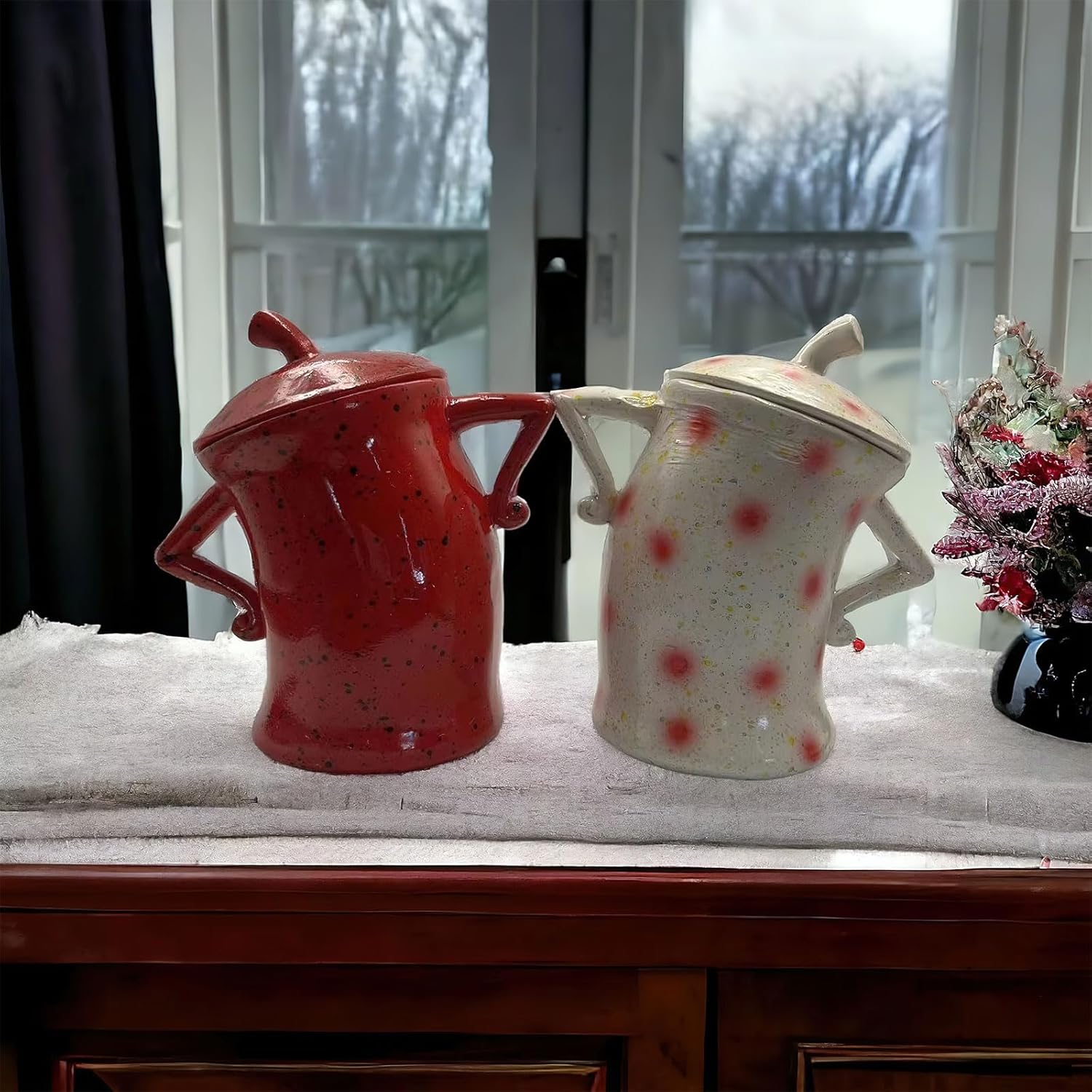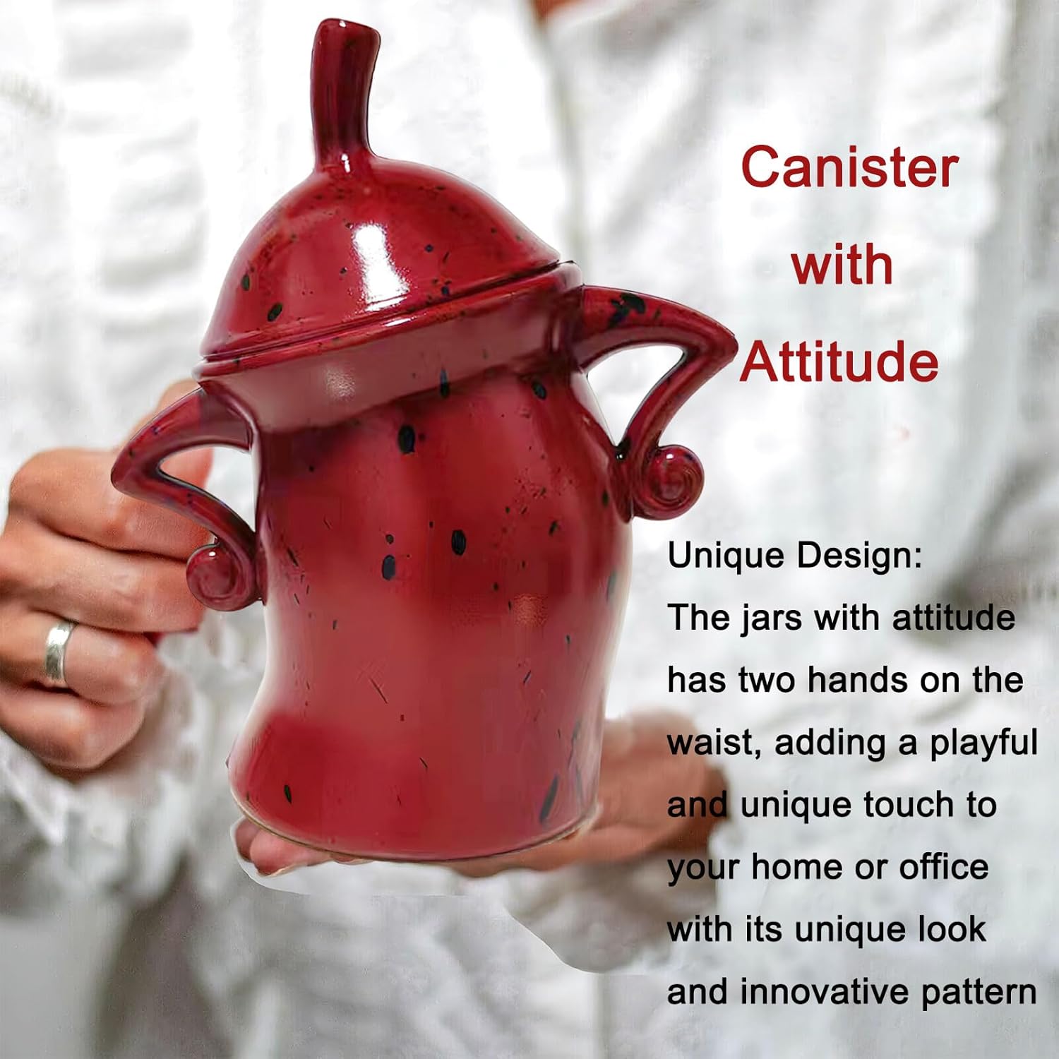 Canister with Attitude, Creative Forked Waist Jars with Lids, Retro Spotted Cup Food Cans Kitchen Storage Jars Airtight Canister for Tea Pot Desktop Cup Ornament(Red)