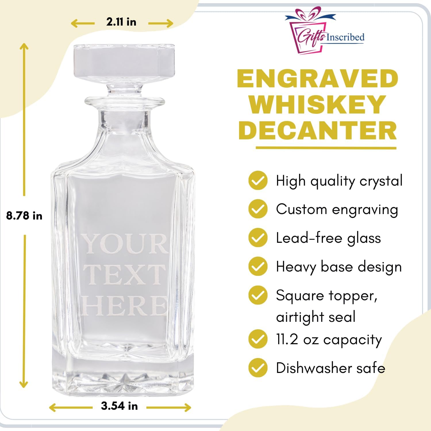 Gifts Inscribed Custom Text Whiskey Decanter Bottle (750 ml) - Personalized Font Glass Liquor Decanter Set - Customized Glassware - Engraved Whisky Glassware Gift for Wedding Anniversary Birthday Dad