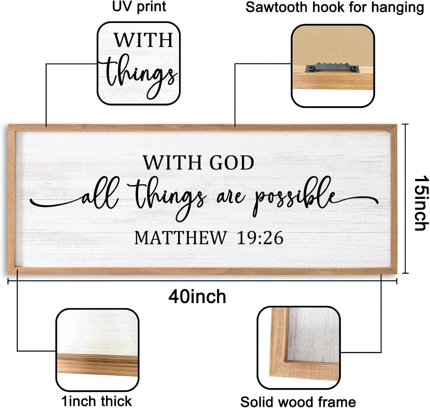 - 【Encouraging Words】With god all things are possible large hanging wood sign adopt minimalist letters on the white background, showing constant reminder of faith and devotion in any setting and you passion for god, adding a touch of elegant, and classic beauty to your space and giving people a calming feeling.
