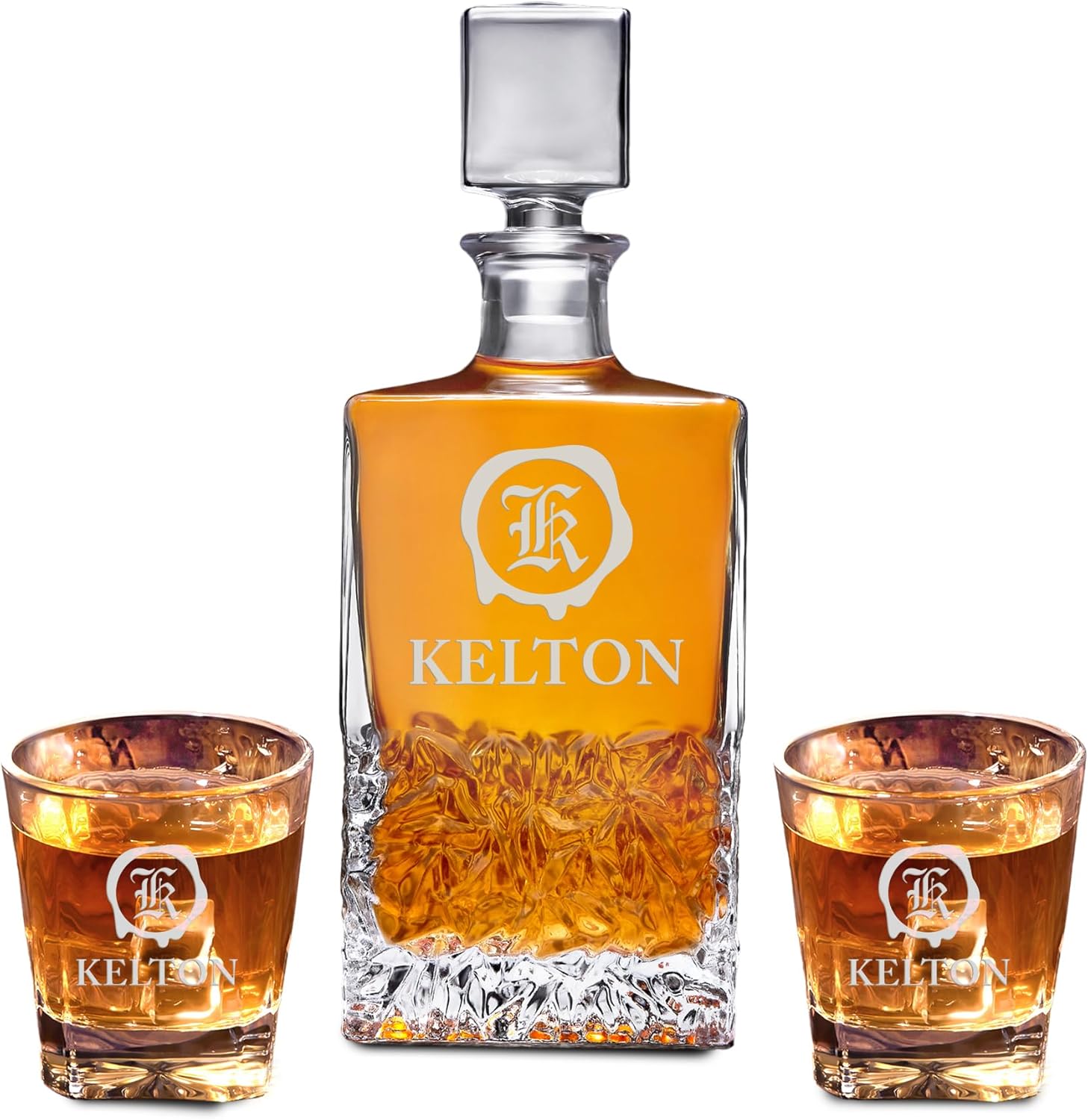 - Premium Personalized Gift - Elevate your gifting with a 700ml rectangular whiskey decanter. Select the ideal set for any occasion by choosing the decanter shape and personalizing it via "Customize Now" with options for decanter only, decanter with 2 glasses, or decanter with 4 glasses, along with 24 custom designs to choose from.