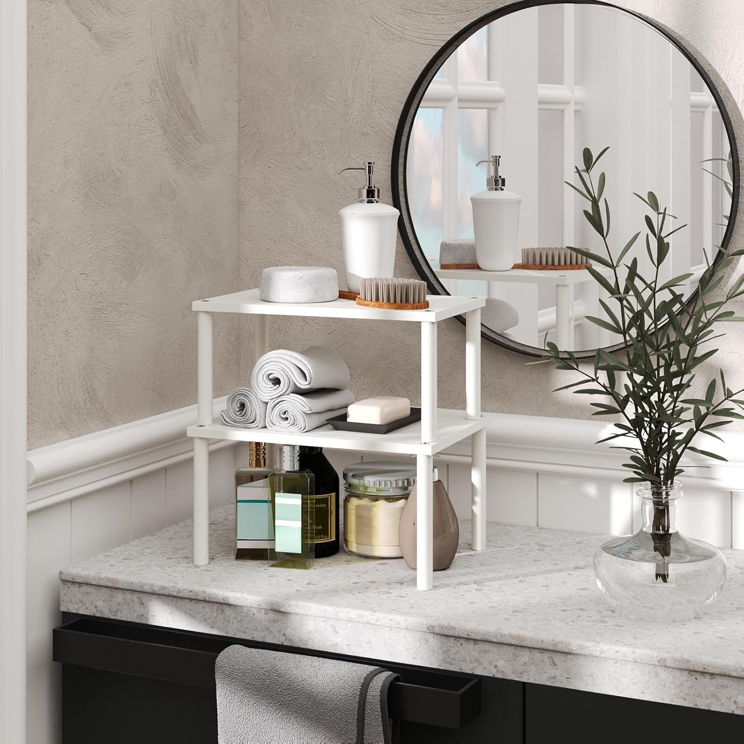 - 【Sturdy Round-Bar Design, Load-Bearing Reliability】Featuring 0.59 inch reinforced round bars, this rack not only looks aesthetically pleasing but also ensures exceptional load-bearing capacity. Whether placing heavy bottles or lightweight spice packets, it remains stable and, giving you peace of mind.