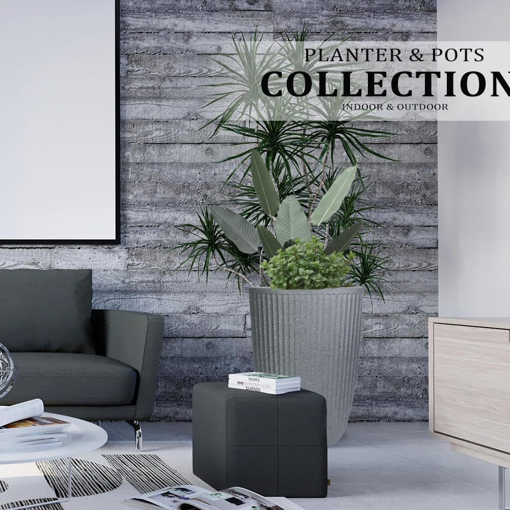- FLUTED DESIGN โ The special modern and stylish design of these tall square planter flower boxes is super for large outdoor and indoor plants, herbs and flowers at home, office, hotel, resrestaurants etc. Ideal for any front entrance, poolside, patio, or spacious hallway, porch, deck, backyard