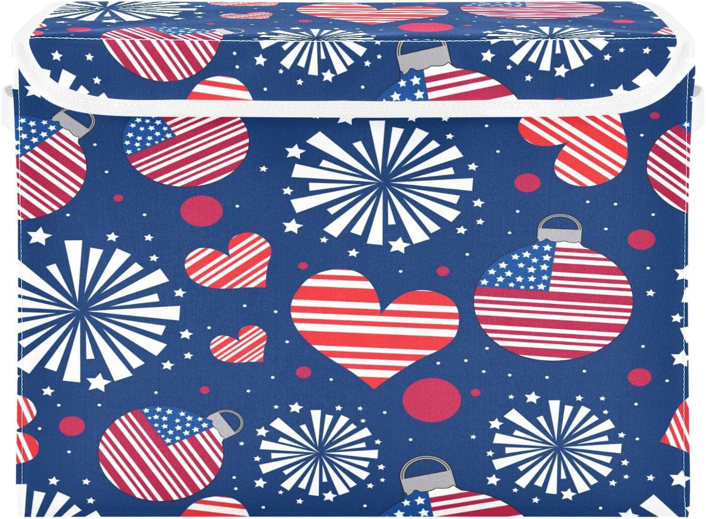 susiyo Happy New Year American fabric storage baskets with lids,Collapsible Storage Boxes,Foldable storage boxes with handles for Home,Office,Closet Organization