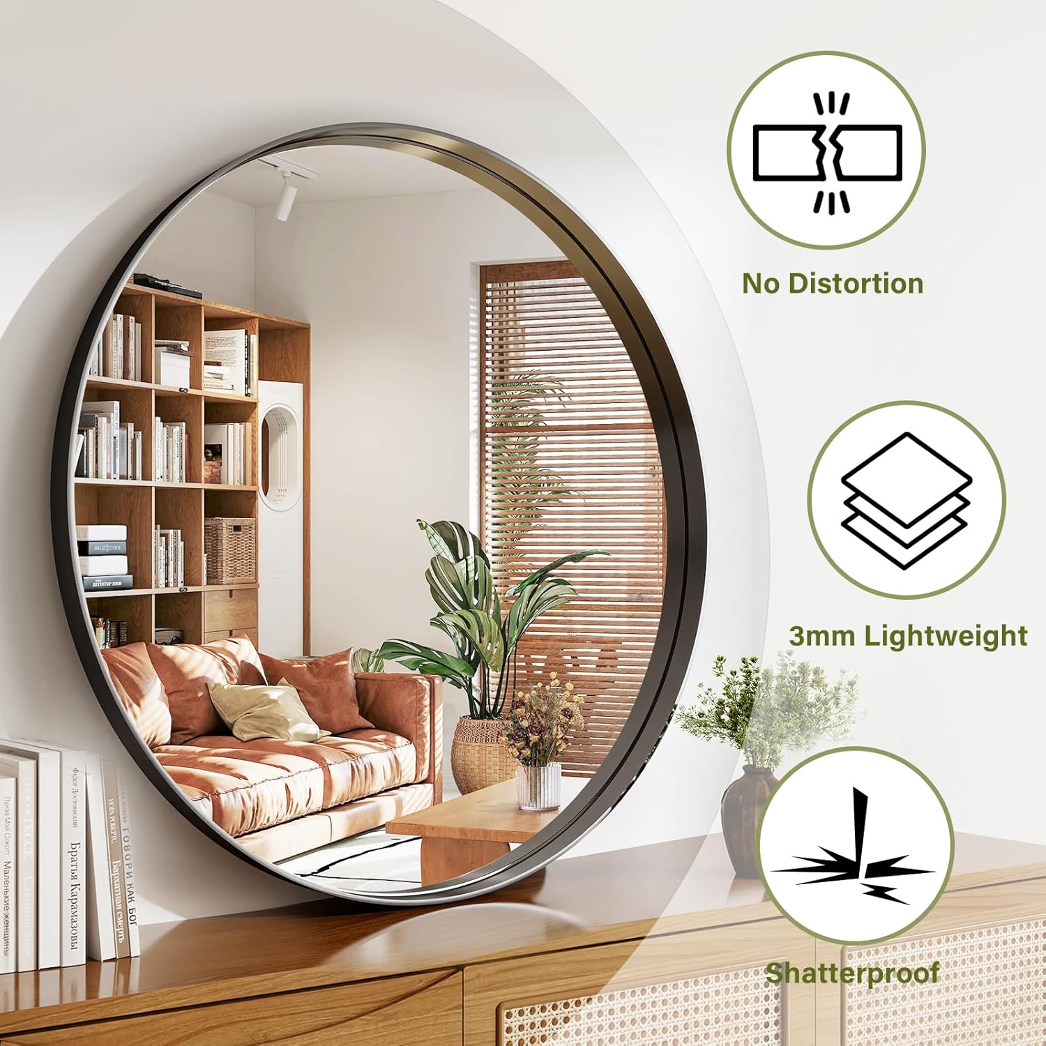 - High-quality Aluminum Alloy :Our round mirror is crafted with durable aluminum alloy combined with an oxidation process. Its minimalist design and classic matte texture perfectly complement any room and match your home decor