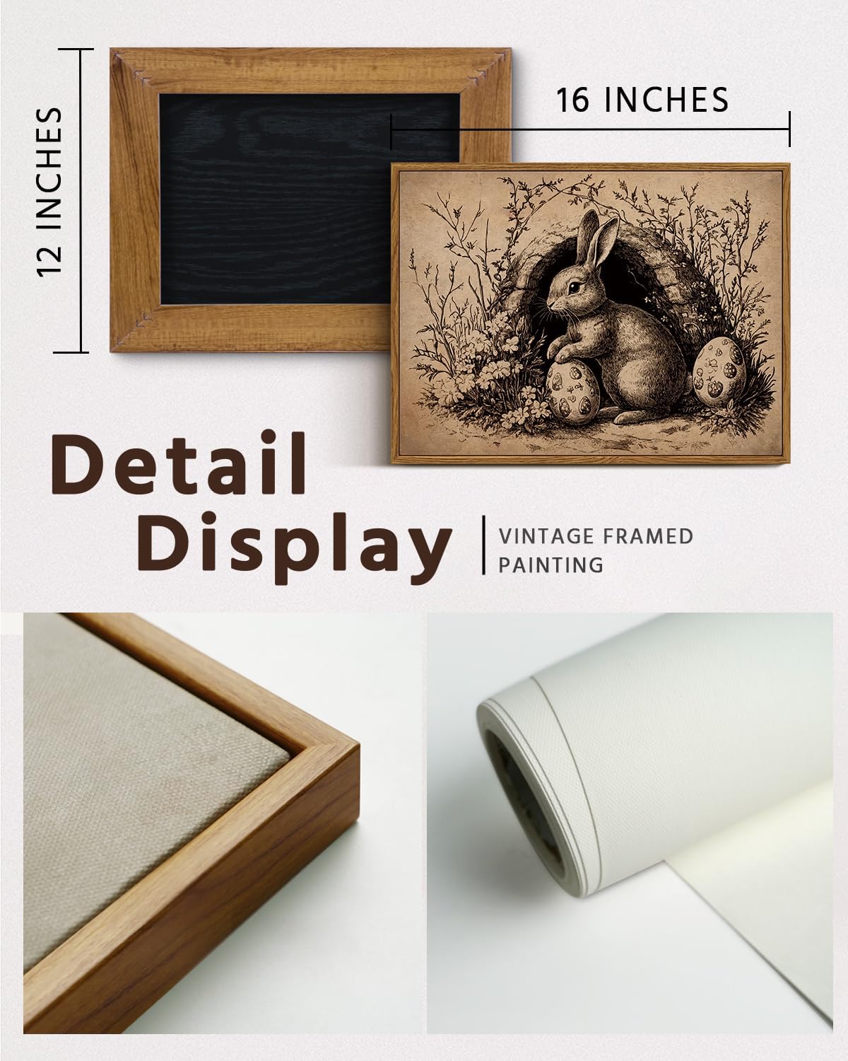 VIYYIEA Framed Wall Art for Living Room, Easter Bunny Egg Canvas Prints, Vintage Home Decor, Rabbits Painting Picture, Bathroom Wall Decor Gifts for Friends or Family -【Easter Collector】-(16L x 12W)