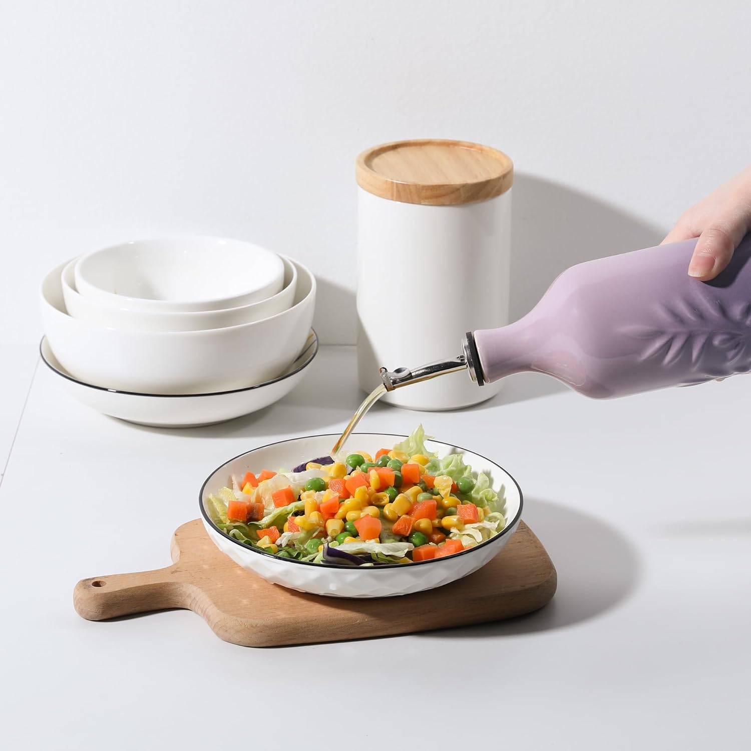 Sweejar Ceramic Olive Oil Dispenser Bottle, 20 Oz Relief Opaque Oil Cruet Protects To Reduce Oxidation, Suitable for Storage Soy Sauce, Coffee Syrup, Liquids, Set of 1 (Gradient Purple)