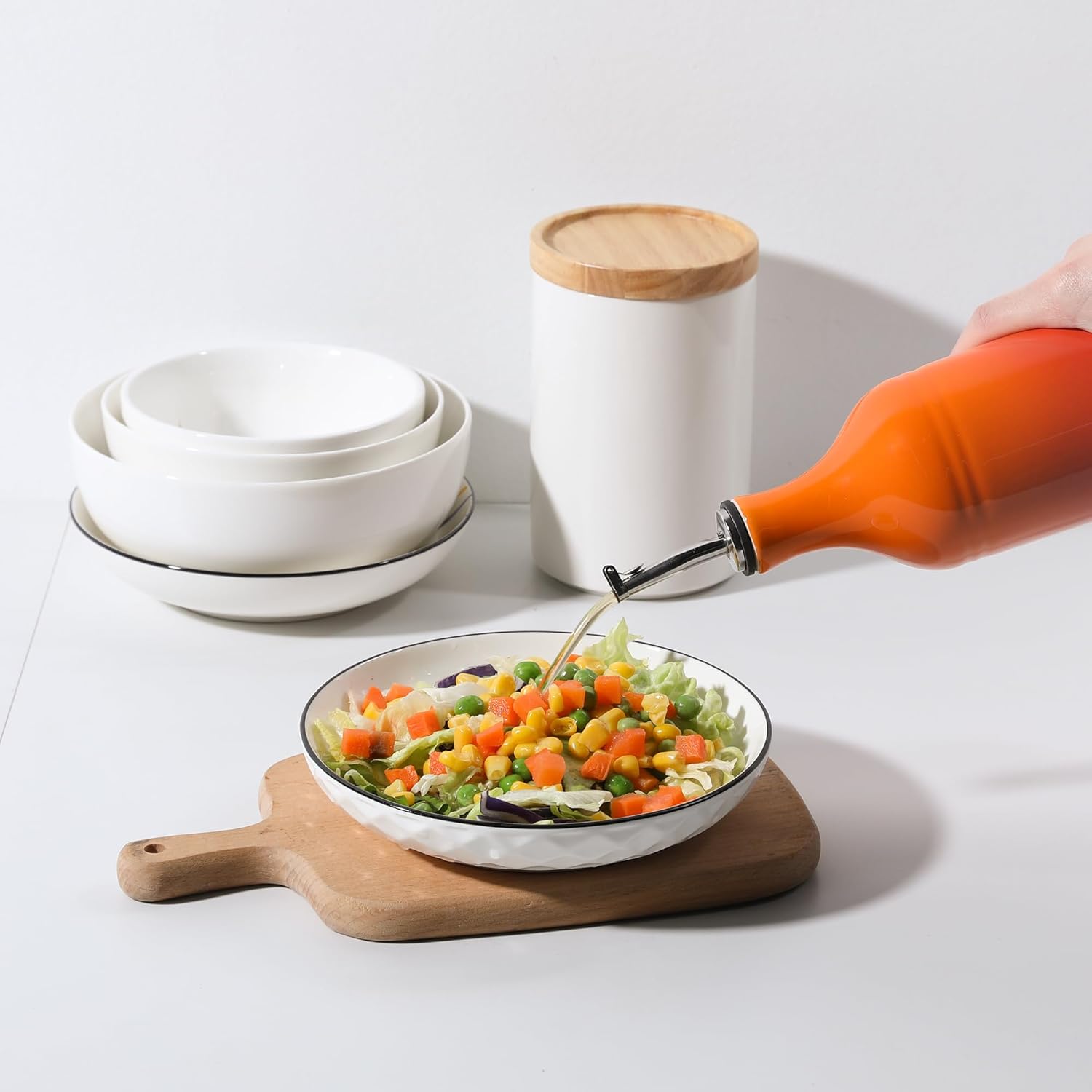 - Leak Proof & Keep Liquid Fresh - The bottle is made of durable ceramic that creates a smooth glaze. And the opaque porcelain bottle protects the oil from light and makes it last longer.