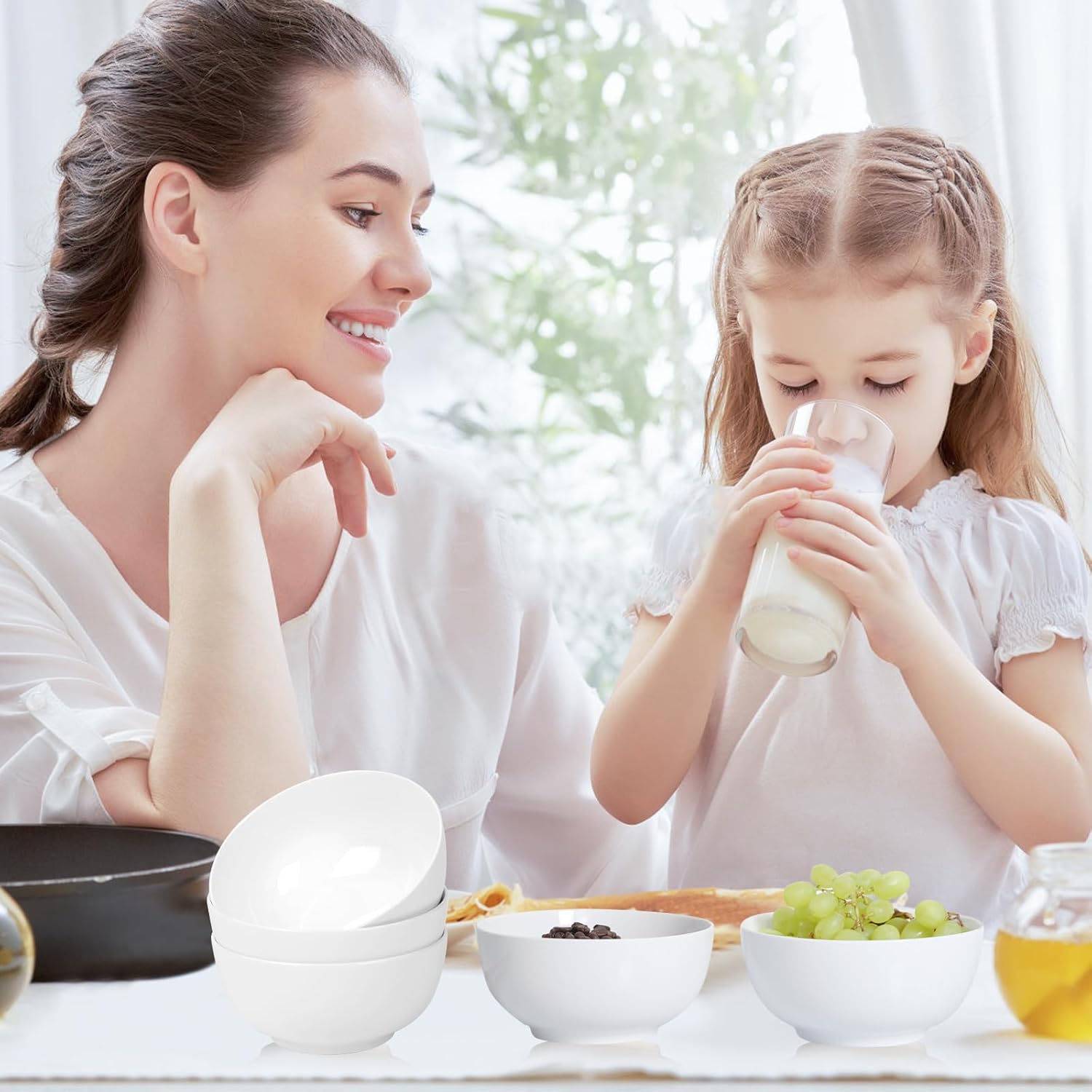 - 🌟Perfect Size for Small Servings: AntoKueh 5 inches white Porcelain Bowls have a MAX capacity of 16 fl oz. 16 oz is to the very top. Each small bowl can hold 14-15 fl oz, which is perfect size for kitchen daily use - salsa,cereal,Ice cream, fruit, side dishes, jello, pudding, yogurt, etc.