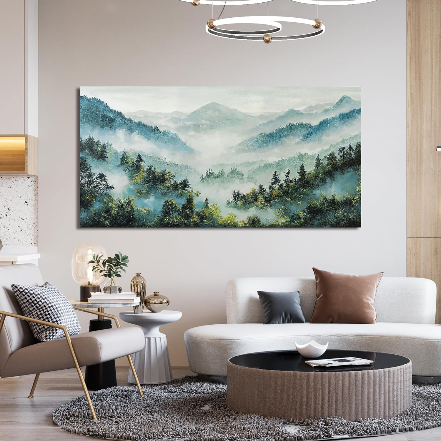 Canvas Wall Art Decor Artwork for Walls Mountain Botanical Wall Art Decor Large Landscape Wall Art for Living Room White Foggy Forest Wall Art Prints for Room Ofiice Bedroom Wall Decor 24" x 48"