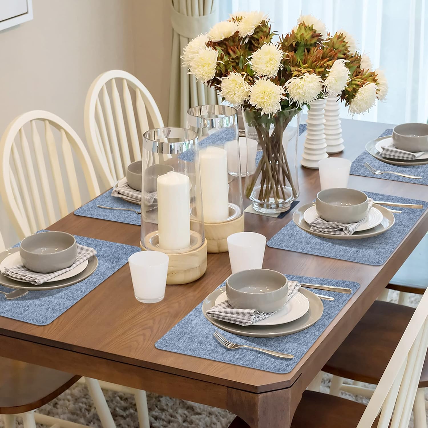 - Simple & Sophisticated - Made with premium faux leather, this placemats 4-pack features a solid design in a rich hue and pleasant textile touch that offers simple yet elegant addition and a splash of color for place settings. Perfect for use for both everyday meals and special occasions.