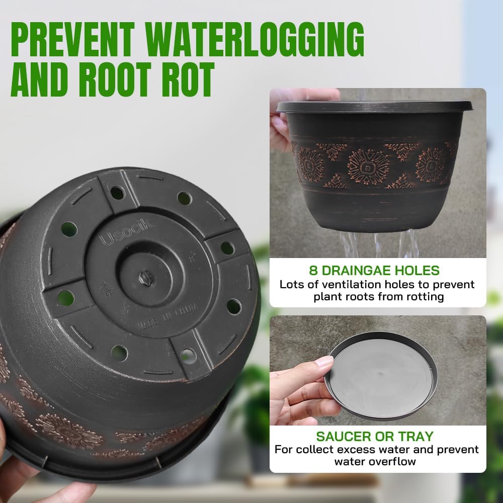 - VINTAGE DESIGN - Vintage colors and a classic look with special flower design. These plastic indoor plant pots are whether resistant and will not color-fade or crack over time.
