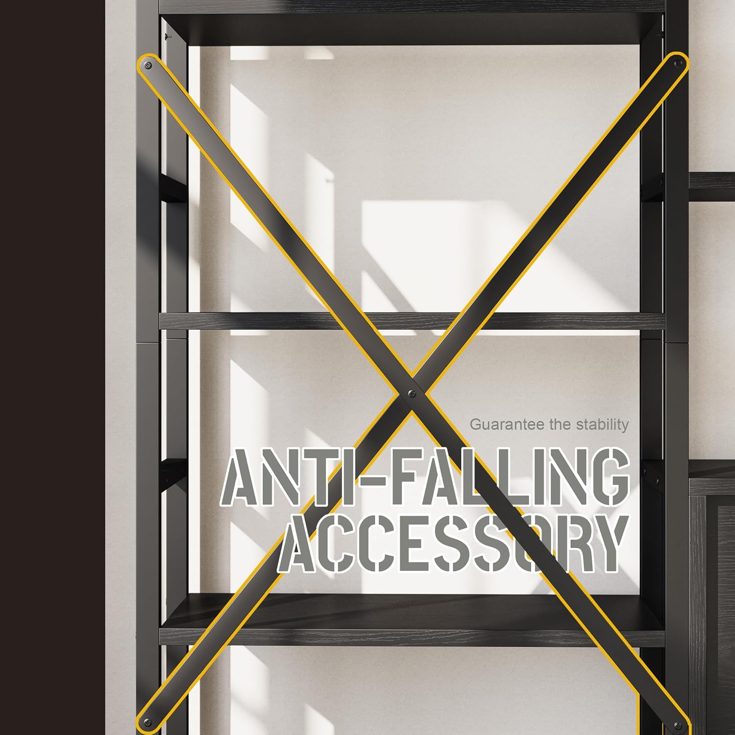 - ăDurable & Stable ConstructionăTall bookshelf is crafted with a sturdy steel frame and high-quality wood panels. Bookshelves features a X-shaped bracket, adjustable foot pads, and an anti-tipping kit, enhancing the durability and stability of the bookcases. The robust structure ensures a long lifespan, making it a reliable and durable furniture piece in your home.