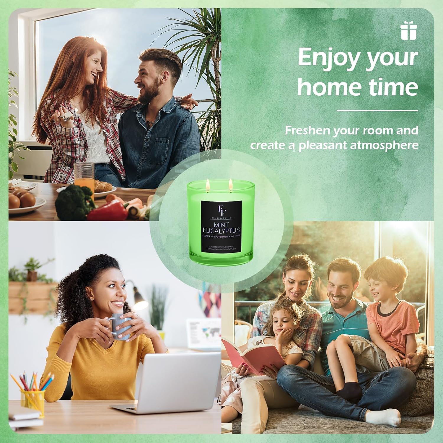 Mint Eucalyptus Scented Candle, 2-Wick Luxury Soy Wax Candle, 9 oz Aromatherapy Candle Home Fragrance Candles Gift
