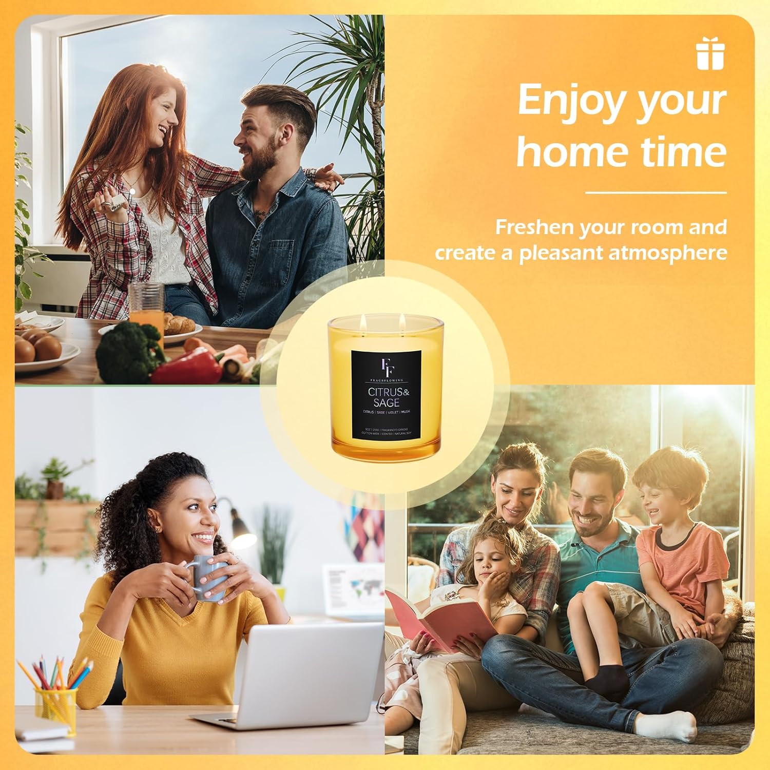 Citrus & Sage Scented Candle, 2-Wick Luxury Soy Wax Candle, 9 oz Aromatherapy Candle Home Fragrance Candles Gift