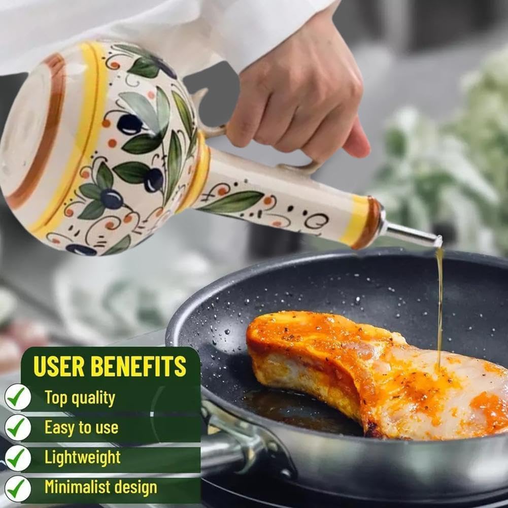- VERSATILE APPLICATION: In addition to being perfect for storing and dispensing olive oil, our oil dispensing bottles can be used with any other oils, coffee syrups, vinegars, sauces, and more, making it even easier to drizzle them over food. olive oil bottle; ceramic oil dispenser;